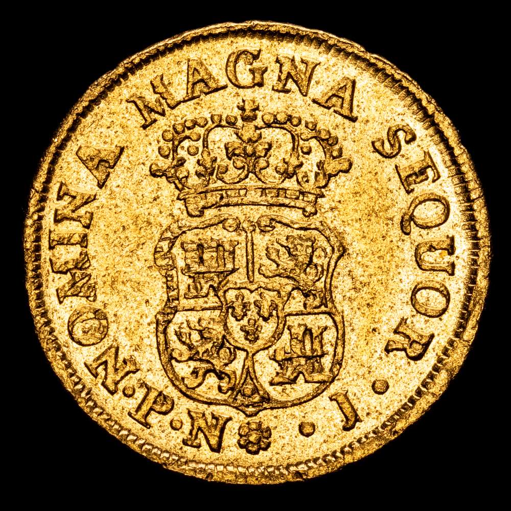 1770. Carlos III. Popayán. J. 2 escudos. (AC. 1624) (Restrepo 58-16). Busto de Fernando VI. Bonito color. Escasa. (6,68 g.). (EBC-) .Oxidaciones marinas.Rara .