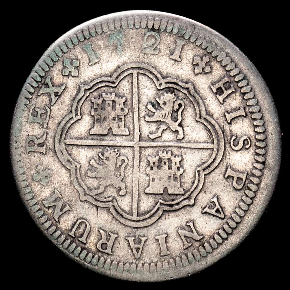 Numismática Barcala > Productos > 2 reales. 1721 F. Segovia. Felipe V. 5,29 g. plata 833. AC.954. MBC+/MBC.