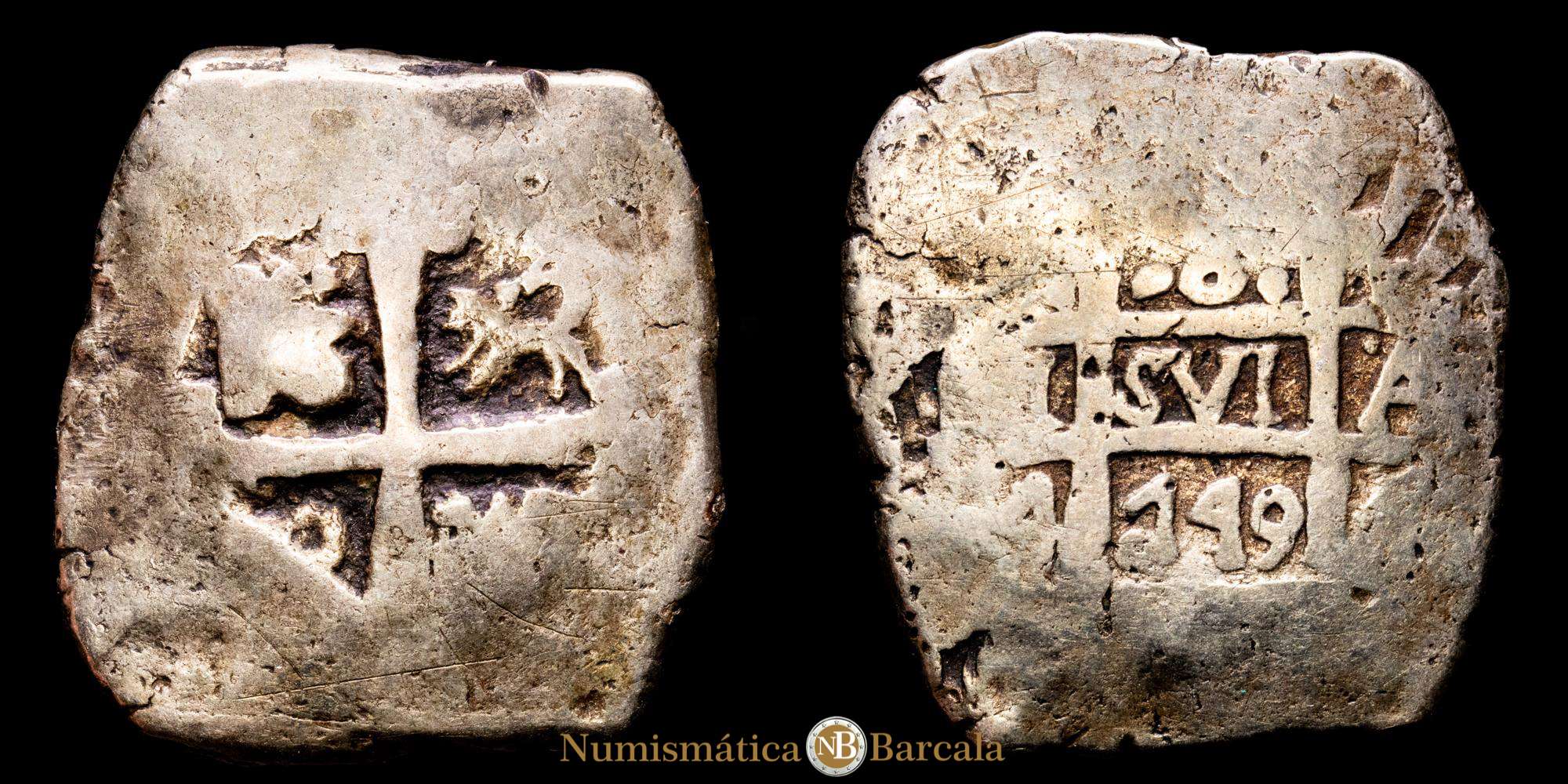 8 reales 1749, falsa de época o imitación indigena. 32mm, 26,09 gramos de plata baja o alpaca.