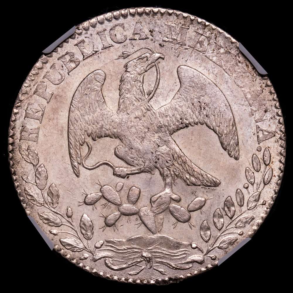 Numismática Barcala > Productos > 8 Reales de la República de México , 1869 Pi-PS. Encapsulado por NGC como AU58, ceca de San Luis Potosí, KM377.12, DP-Pi57.