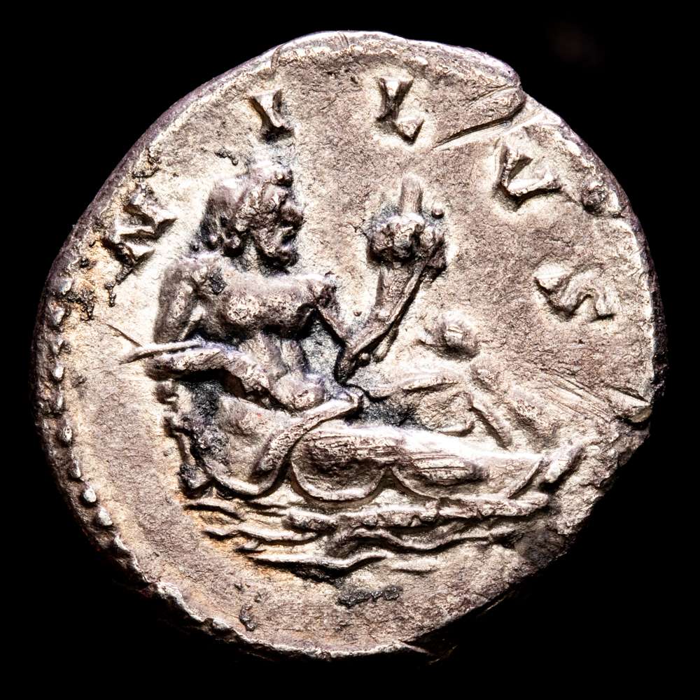 Emisión “Serie Viajes” (“Ciclo Provincias”): Cabeza laureada a la derecha / NILVS, Nilo reclinado a la derecha, sosteniendo una caña y una cornucopia; a la derecha, hipopótamo de pie a la izquierda, cocodrilo a la izquierda debajo.