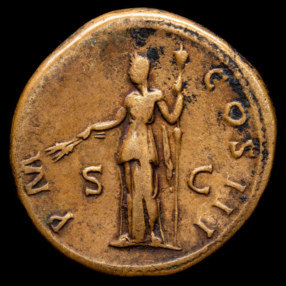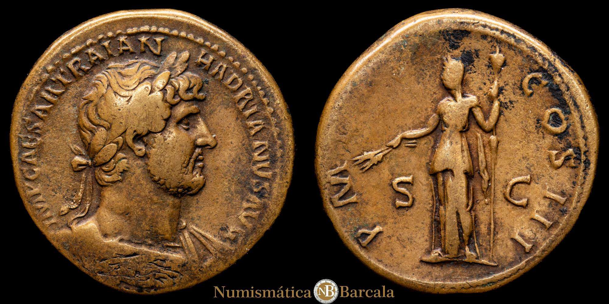 Numismática Barcala > Productos > Adriano. Sestercio. (26,01 g. 35 mm). Roma. Acuñado entre finales de 117-138 d.C.. RIC II.3 660; Banti 590. Muy bien.