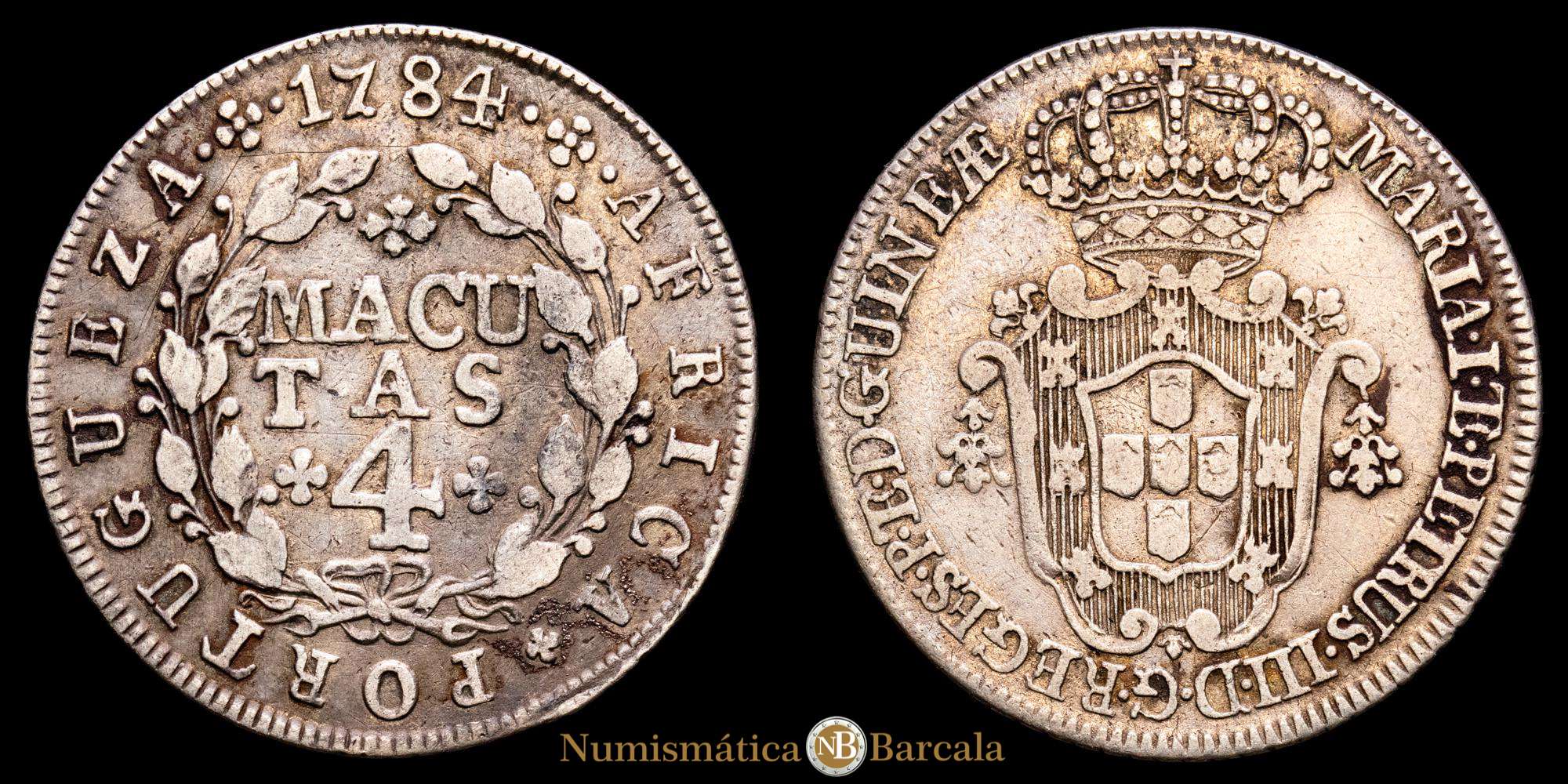 Africa Portuguesa – D. Maria I y Pedro III. 4 Macutas. (5,61 g.). Angola. 1784. KM-22. MBC-. Mintage 30000 pcs.