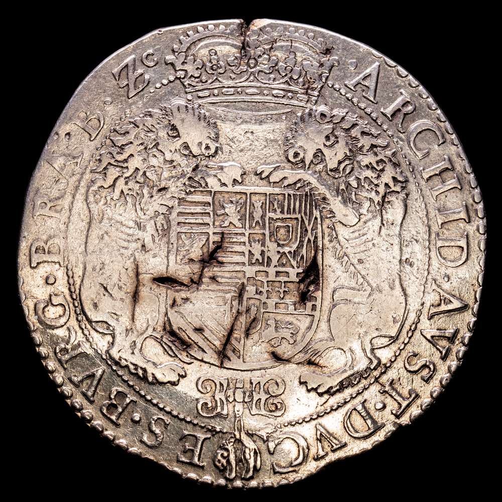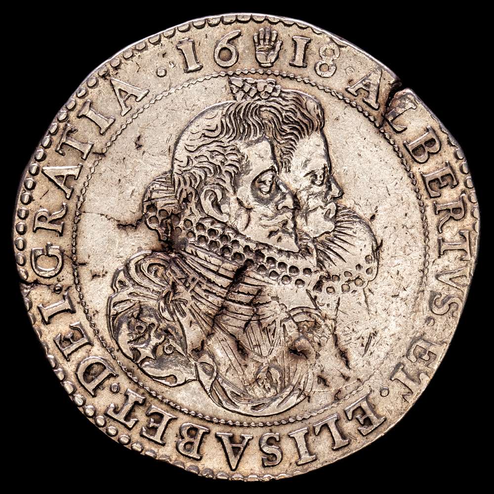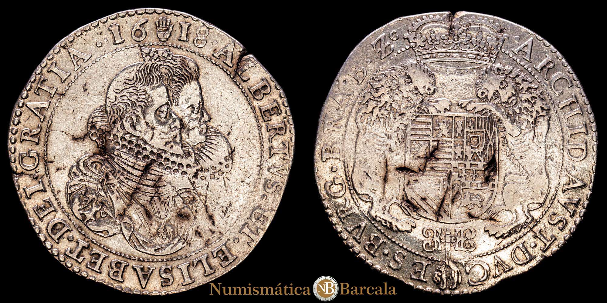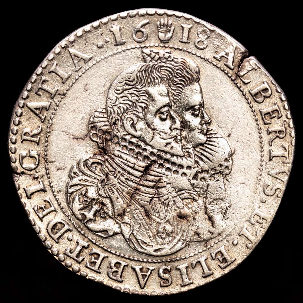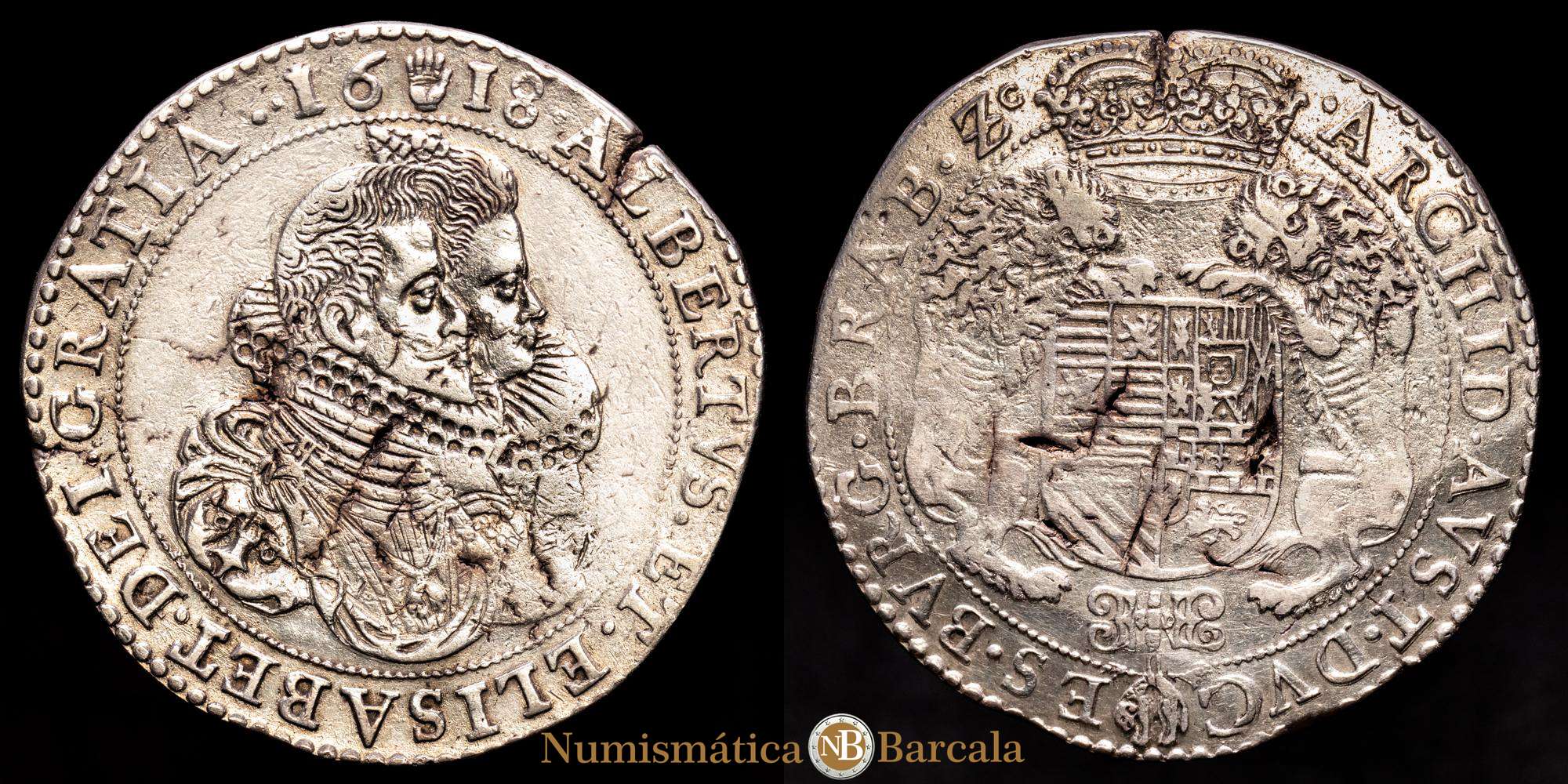 Alberto e Isabel (1598-1621). 1 Ducatón. 1618. Amberes. (Tauler-1739). (Vti-387). (Vanhoudt-617.AN). Ag. 31,85 gramos. Ligeras oxidaciones. VF+.