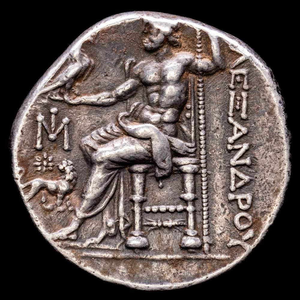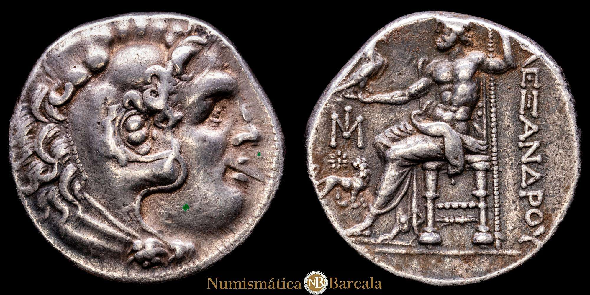 Numismática Barcala > Productos > Alejandro III el Grande, 336-323 a. C. Tetradracma ø 27 mm (16,94 g). 295-275 d. C. Ceca de Mileto. Precio: 2161; Müller. Buena tonalidad. VF+.