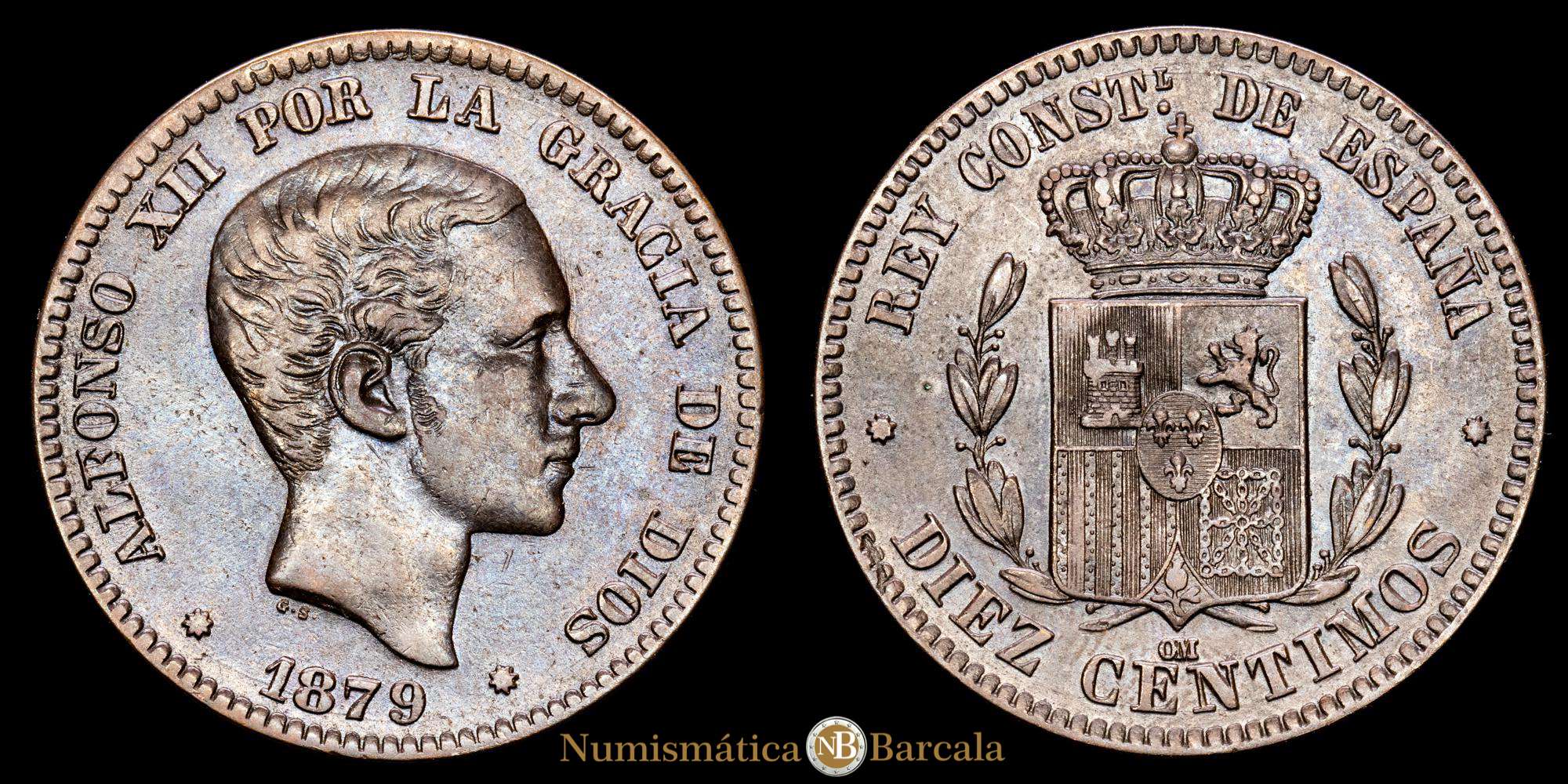 Numismática Barcala > Productos > Alfonso XII. 10 Céntimos. (9,94 g.). Barcelona. 1879. Ensayador O·M. Aureo y Calicó-10. MBC+.