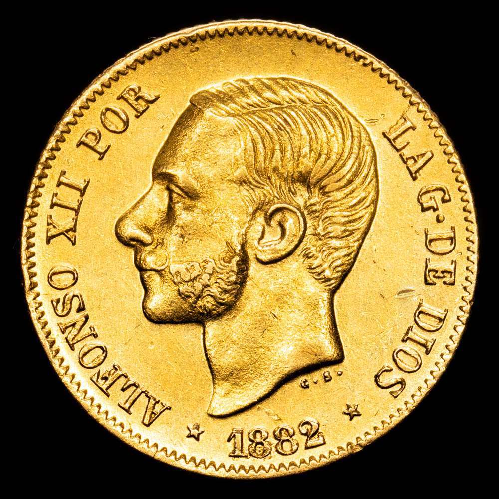 Alfonso XII (1874-1885). 4 pesos. 1882. Manila. (Cal-127). Au. 6,76 g. Magnífica con pleno brillo original e ínfimas marquitas. Rarísima. EBC+.