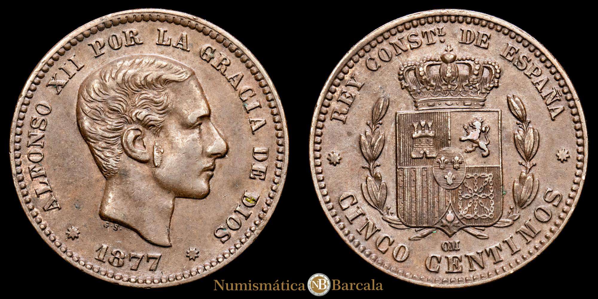 Numismática Barcala > Productos > Alfonso XII. 5 Céntimos. (4,97 g.). Barcelona. 1877. Aureo y Calicó-4. MBC+.