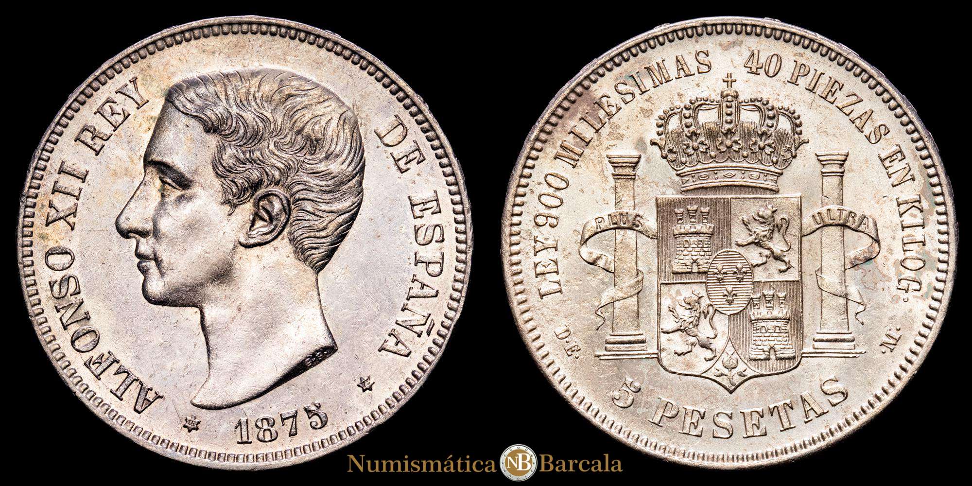Numismática Barcala > Productos > Alfonso XII. 5 Pesetas. (24,83 g.). Madrid. 1875 *18-75*. Ensayador DE·M. AC-35. EBC+.