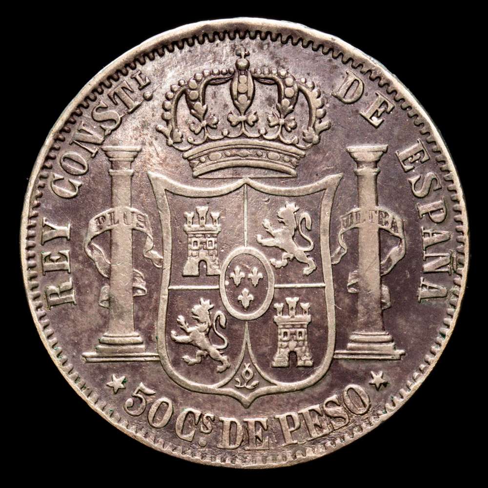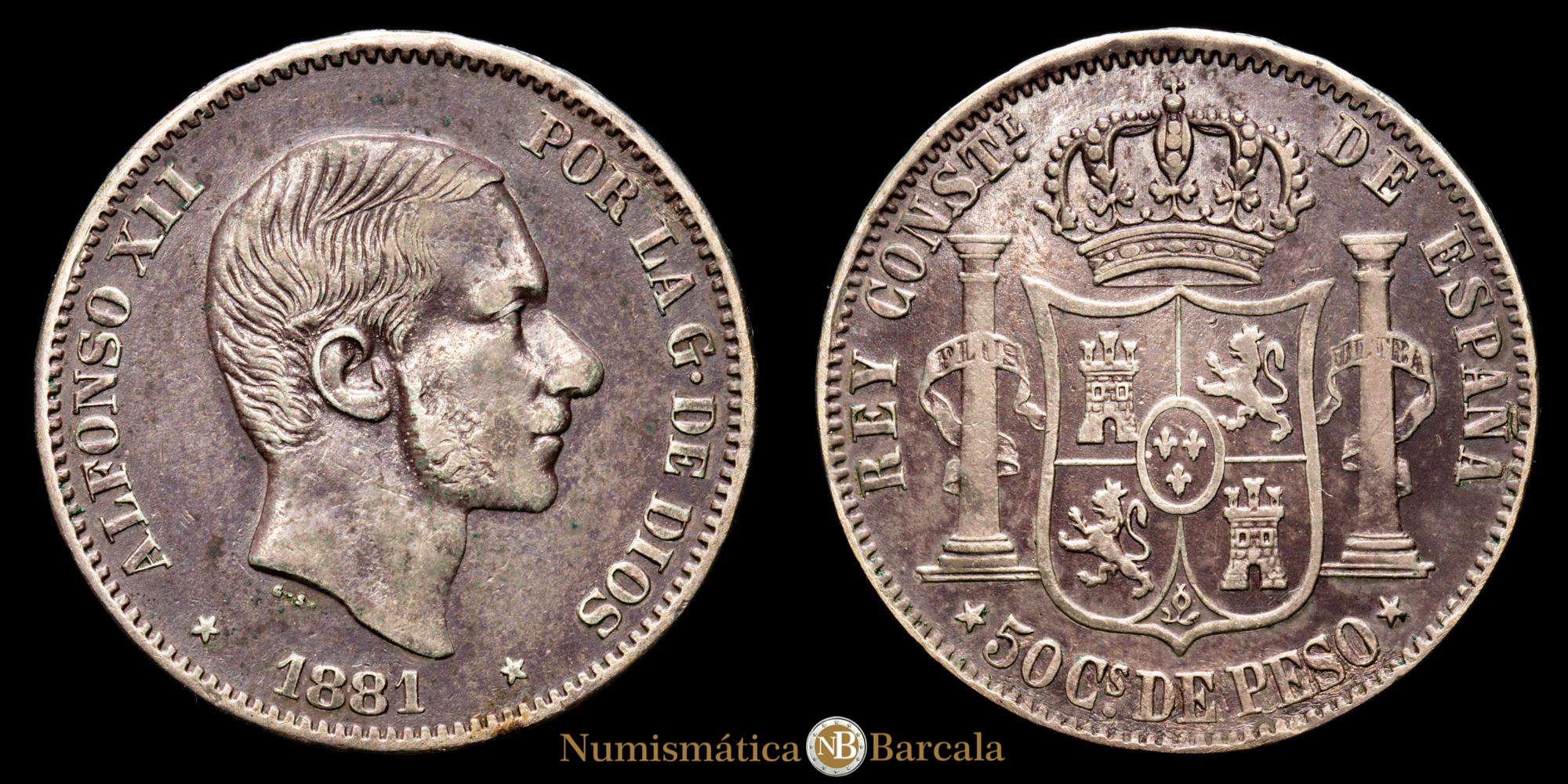 Alfonso XII. 50 Céntimos. (g.). Manila. 1881. AC-114. MBC+. Bonita tonalidad. Colonia española.