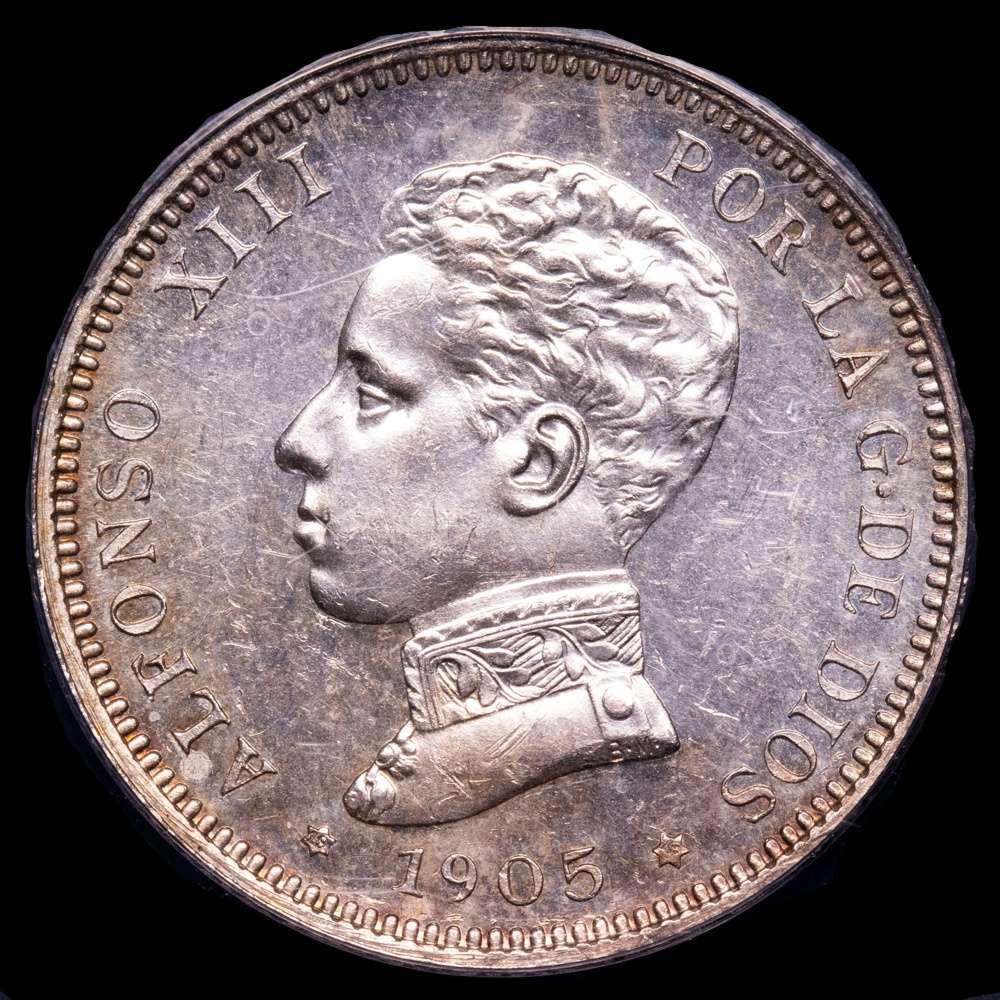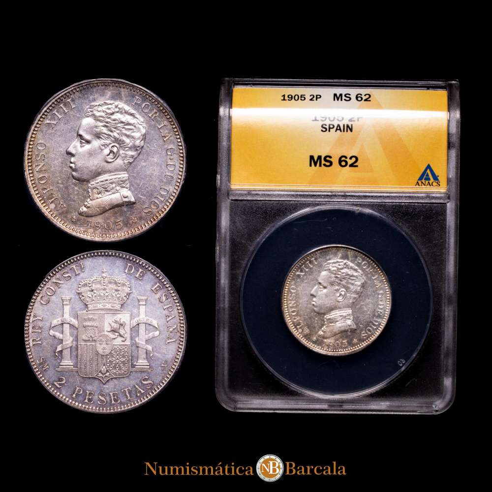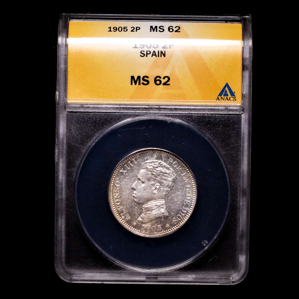 Numismática Barcala > Productos > Alfonso XIII. 2 Pesetas. Madrid. 1905. SM·V. (AC. 88). Encapsuladao por ANACS como MS62 .