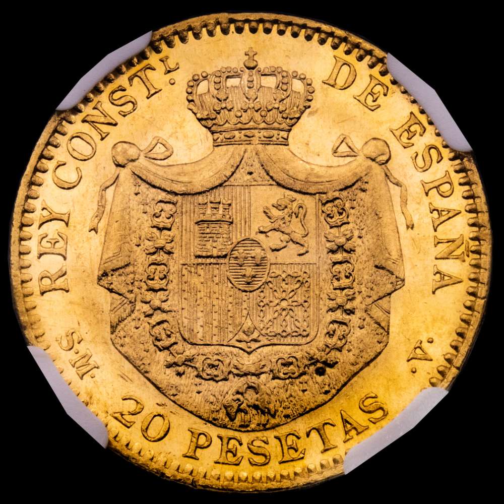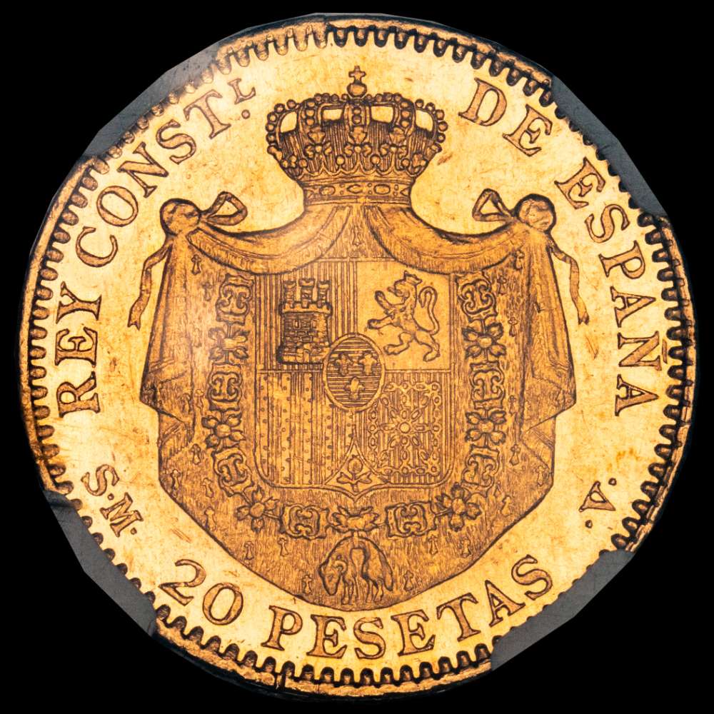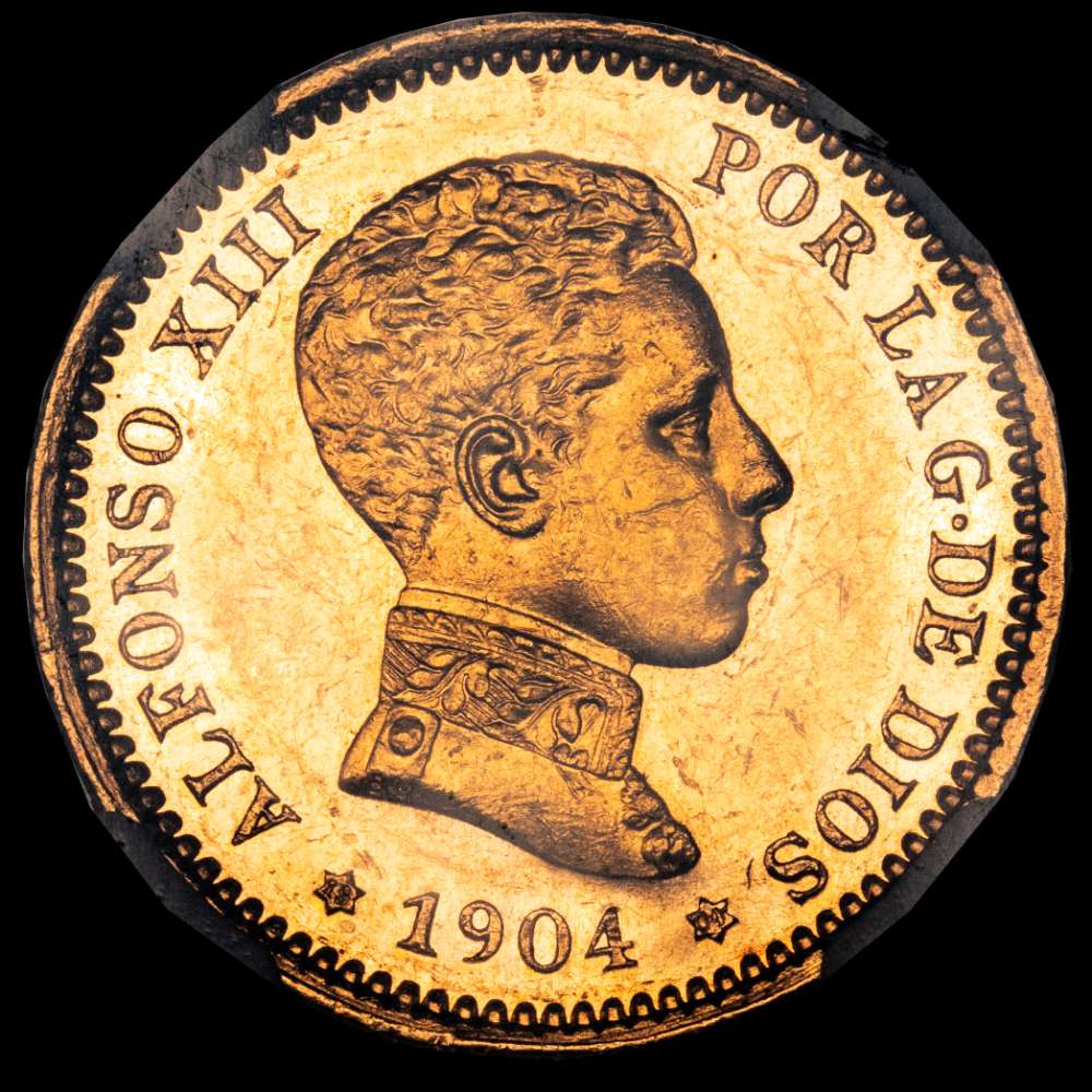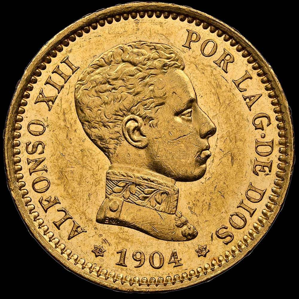Numismática Barcala > Productos > Alfonso XIII. 20 Pesetas. ( g.). Madrid. 1904(04). SM·V. Cal-117. MS61. Tipo “cadete”. Brillo original. Rara y más en este estado.