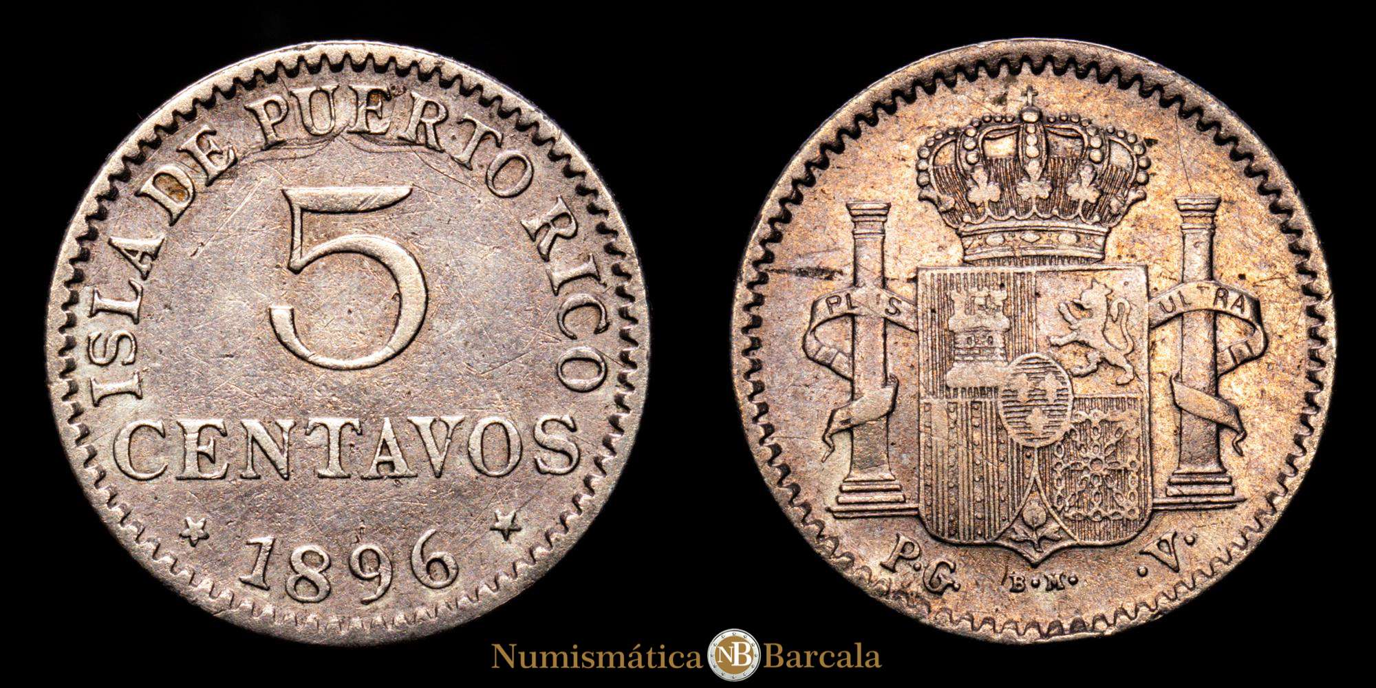 Alfonso XIII. 5 Centavos. (1,16g.). Puerto Rico. 1896. Ensayador PG·V. Aureo y Calicó – 124. MBC+. Escasa.