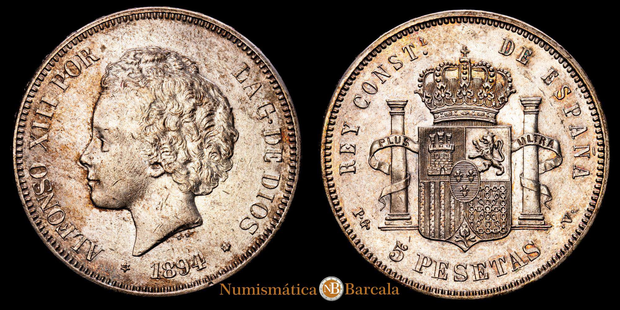 Alfonso XIII. 5 Pesetas. (24,91 g.). Madrid. 1894 *18-94*. PG·V. CAL-104. EBC-.