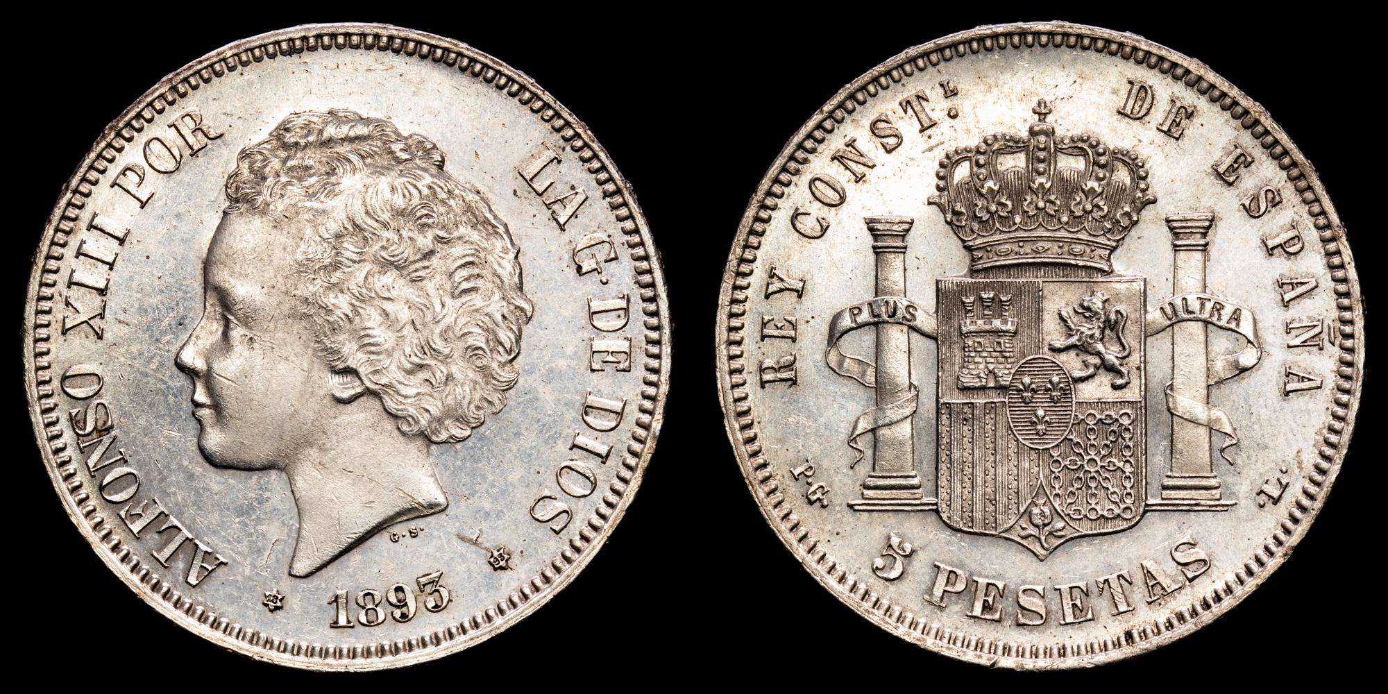 Alfonso XIII. 5 Pesetas. (25,01 g.). Madrid. 1893 *18-93*. PG·L. AC-102. EBC+/SC-.