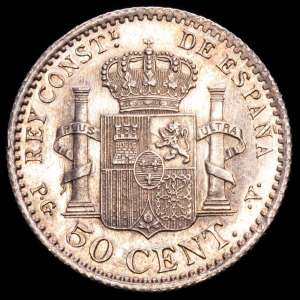 Alfonso XIII. 50 Céntimos (2,47 g.). 1892/82*9-2. Ensayador PG-M. AC-28. EBC-