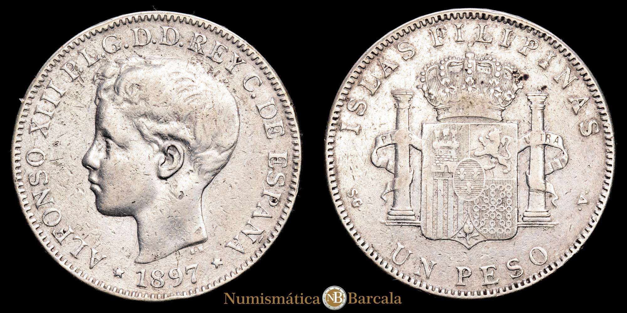 Alfonso XIII. Un Peso. (24,88 g.). Manila. 1897. SG·V. AC-122. MBC-.