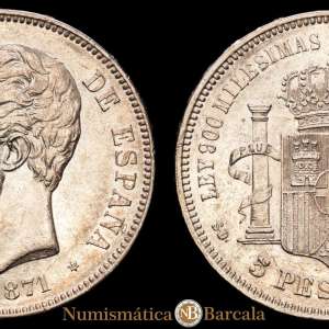 Amadeo I. 5 Pesetas. (24,88g.). Madrid. 1871. *18-71*. Ensayador SD-M. AC-1. EBC-. Restos de brillo original.