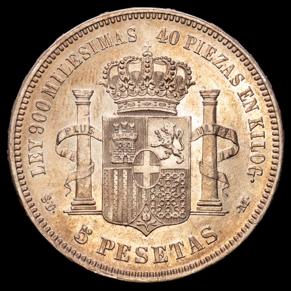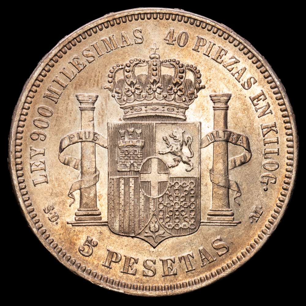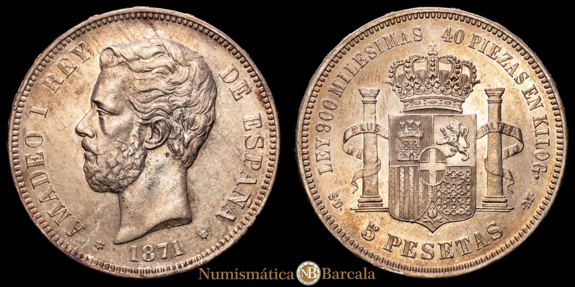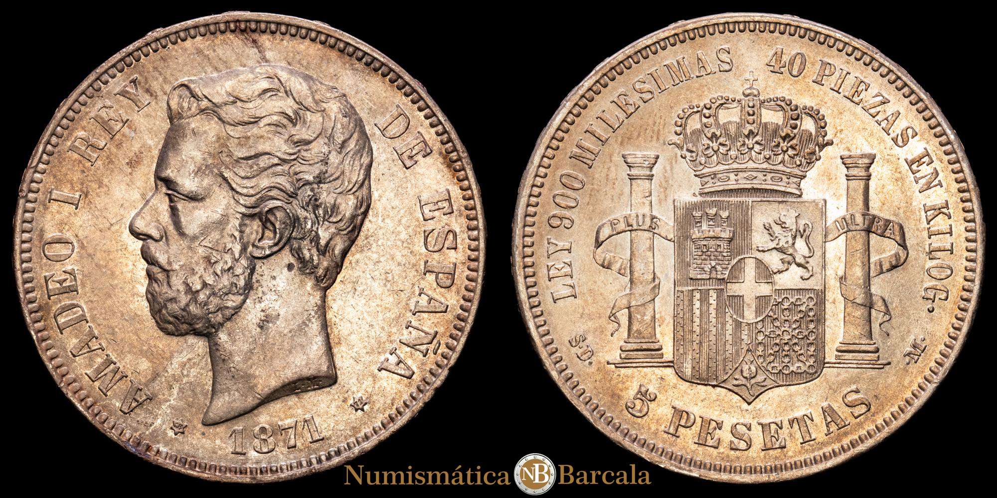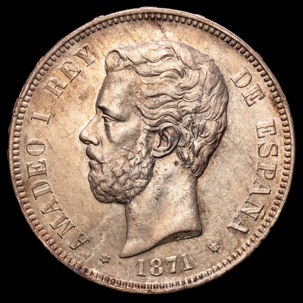 Amadeo I. 5 Pesetas. (24,96g.). Madrid. 1871. *18-71*. Ensayador SD-M. AC-1. Bella pátina. EBC-.