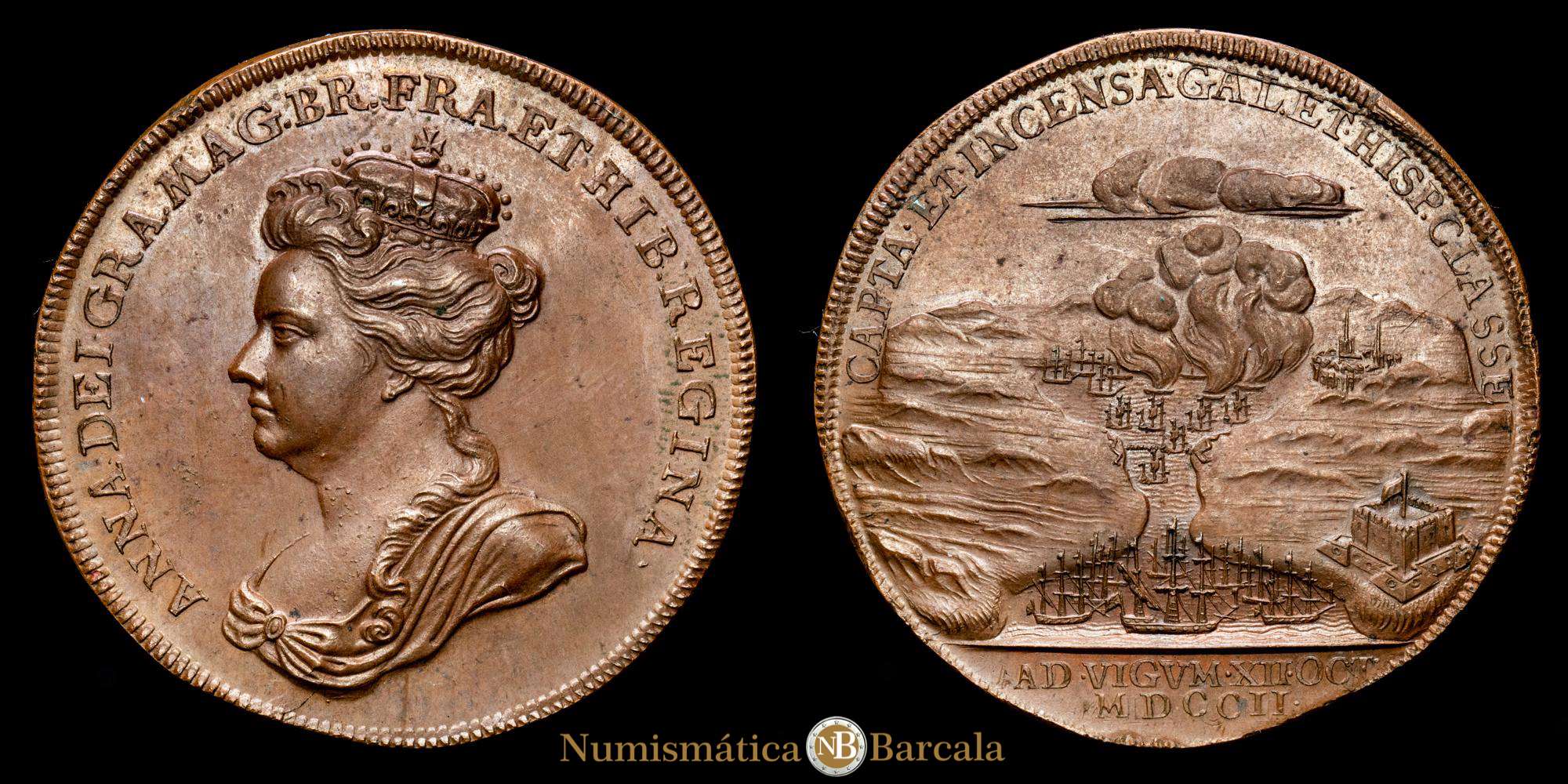 Numismática Barcala > Productos > Anna. Medalla. (14.29 g.). Vigo. MDCCII-1702. EIMER-395. UNC-. Expedición a la bahía de Vigo en 1702