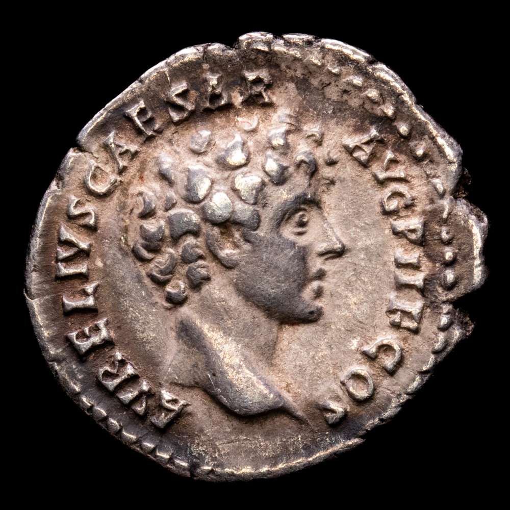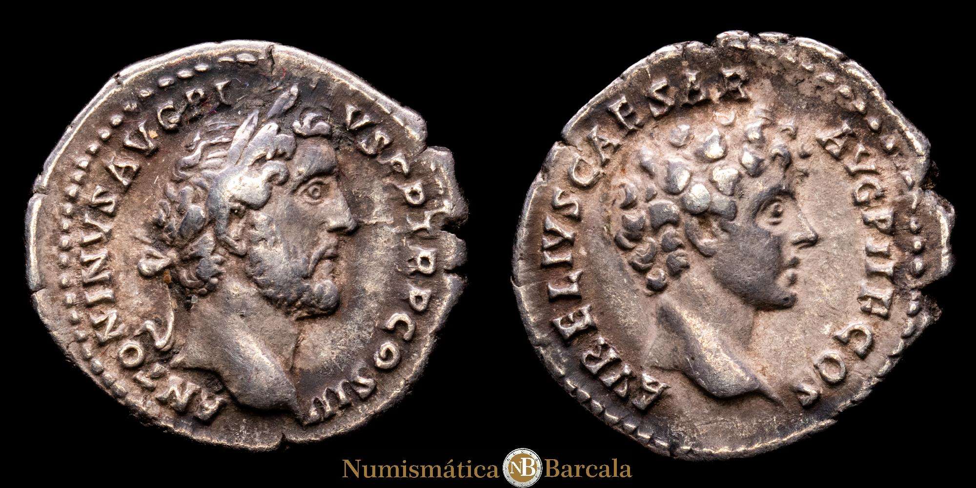 de Antonino Pío, con Marco Aurelio como César (138-161). Denario. Roma.
