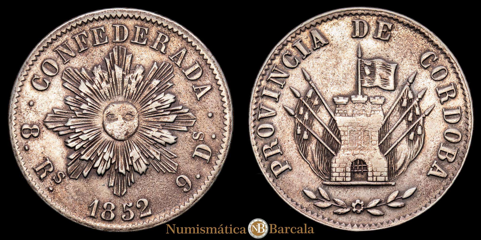Argentina. 8 reales. 1852. Córdoba. (Km-32). Ag. 25,90 g. Muy escasa. VF+.