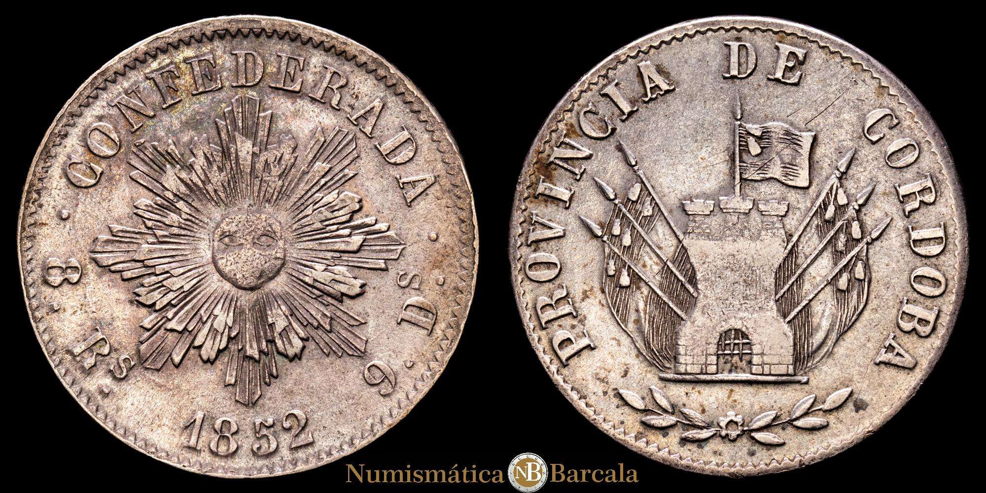 Numismática Barcala > Productos > Argentina. 8 reales. 1852. Córdoba. (Km-32). Ag. 27,41 gramos. Atractivo. Muy escaso. MBC+.