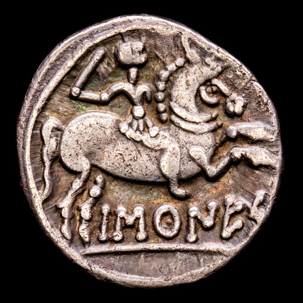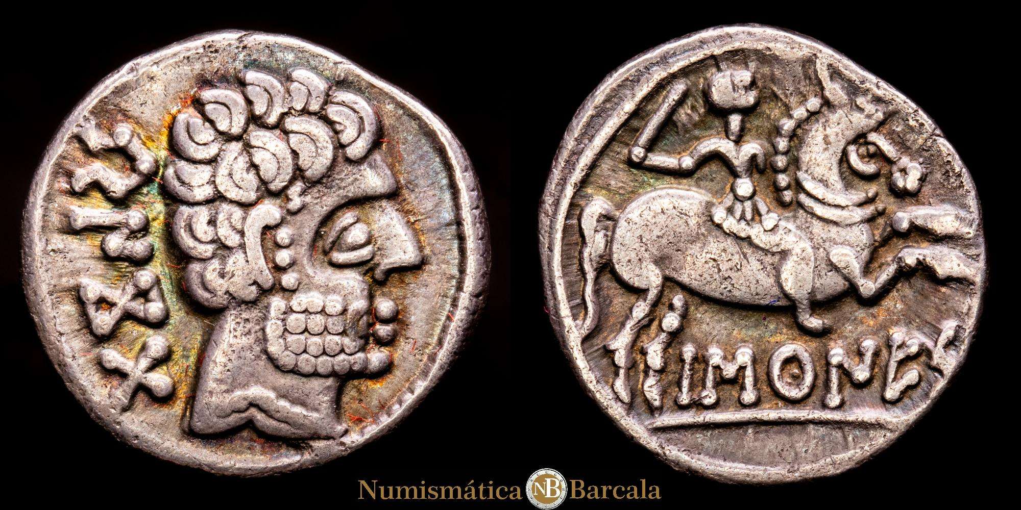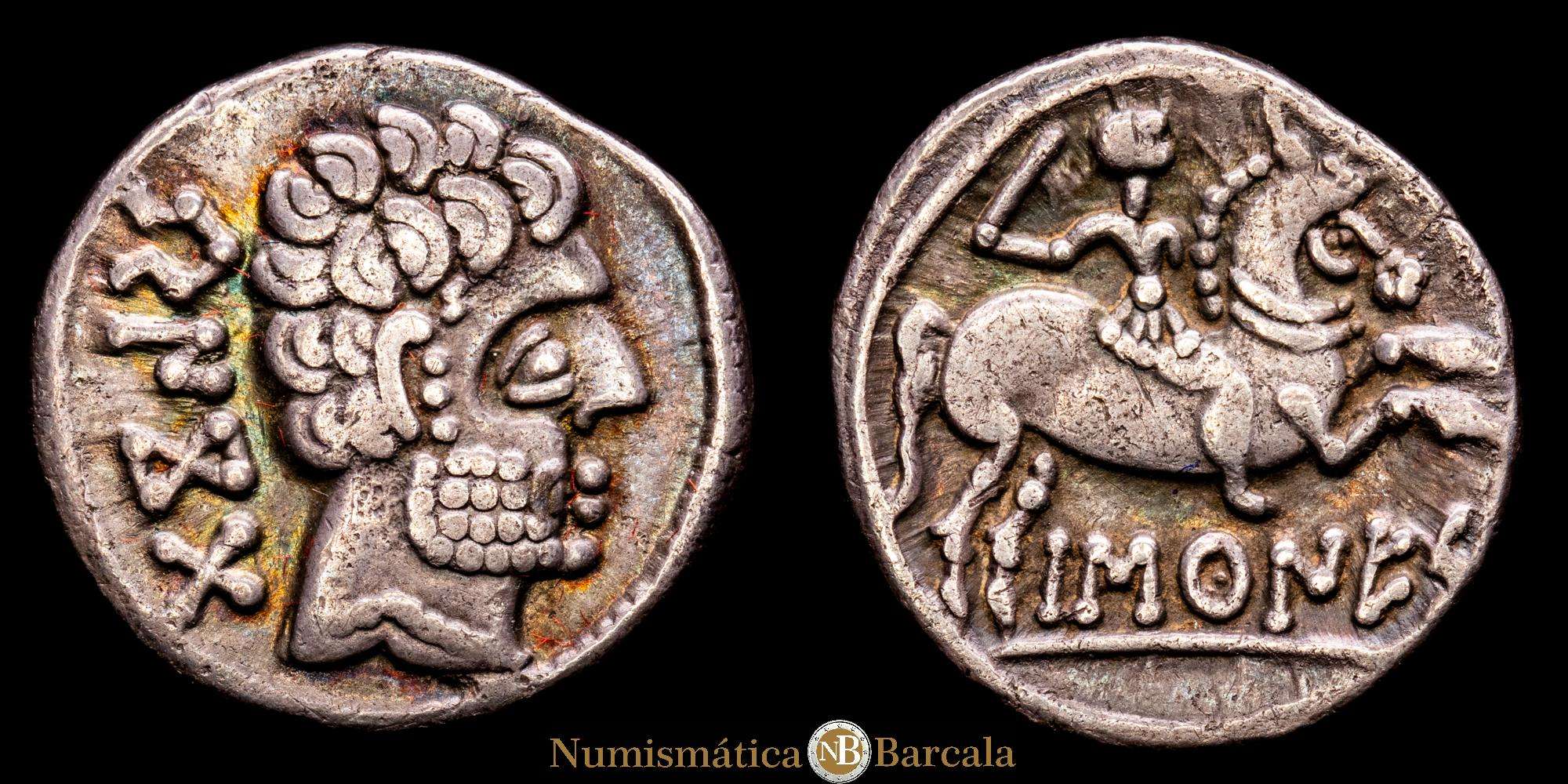 Numismática Barcala > Productos > BASCUNES (Pamplona). Denario. (Ar. 3,65g/18mm). 120-20 a.C. (Abh-215). (MIB-87/14). (Acip-1630). MBC+. Bonita pátina.