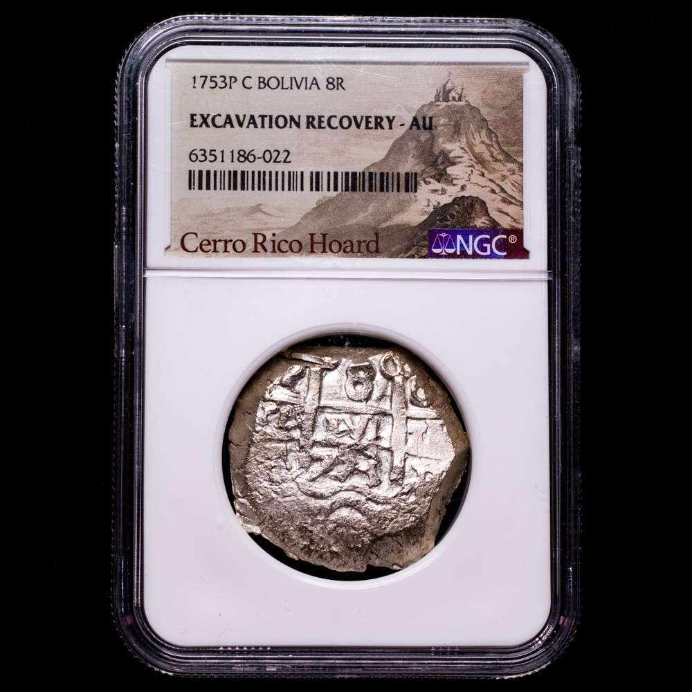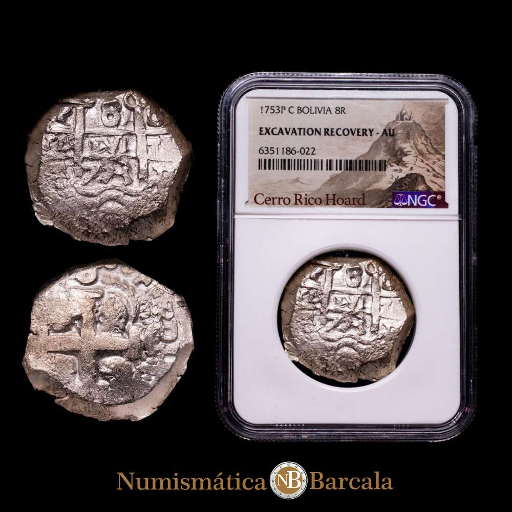 Bolivia Fernando VI Cob “Cerro Rico Hoard” 8 Reales 1753 P+c, AU. NGC, ceca de Potosí, KM40, Cal-526. Cerro Rico de Potosí es una montaña en los Andes (Bolivia).