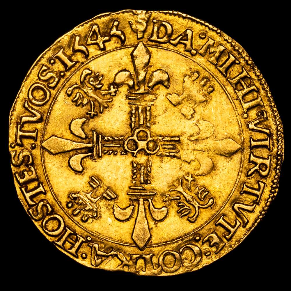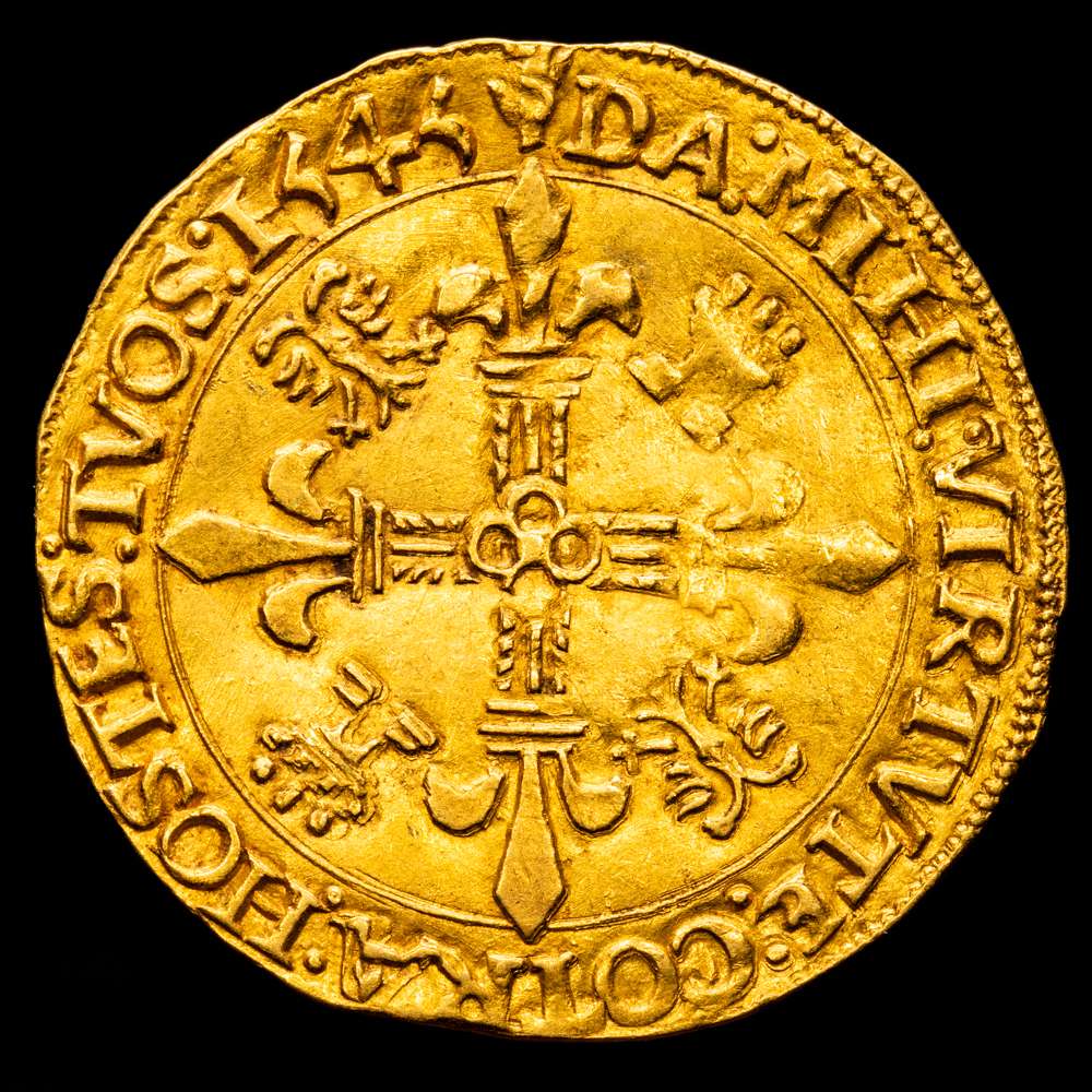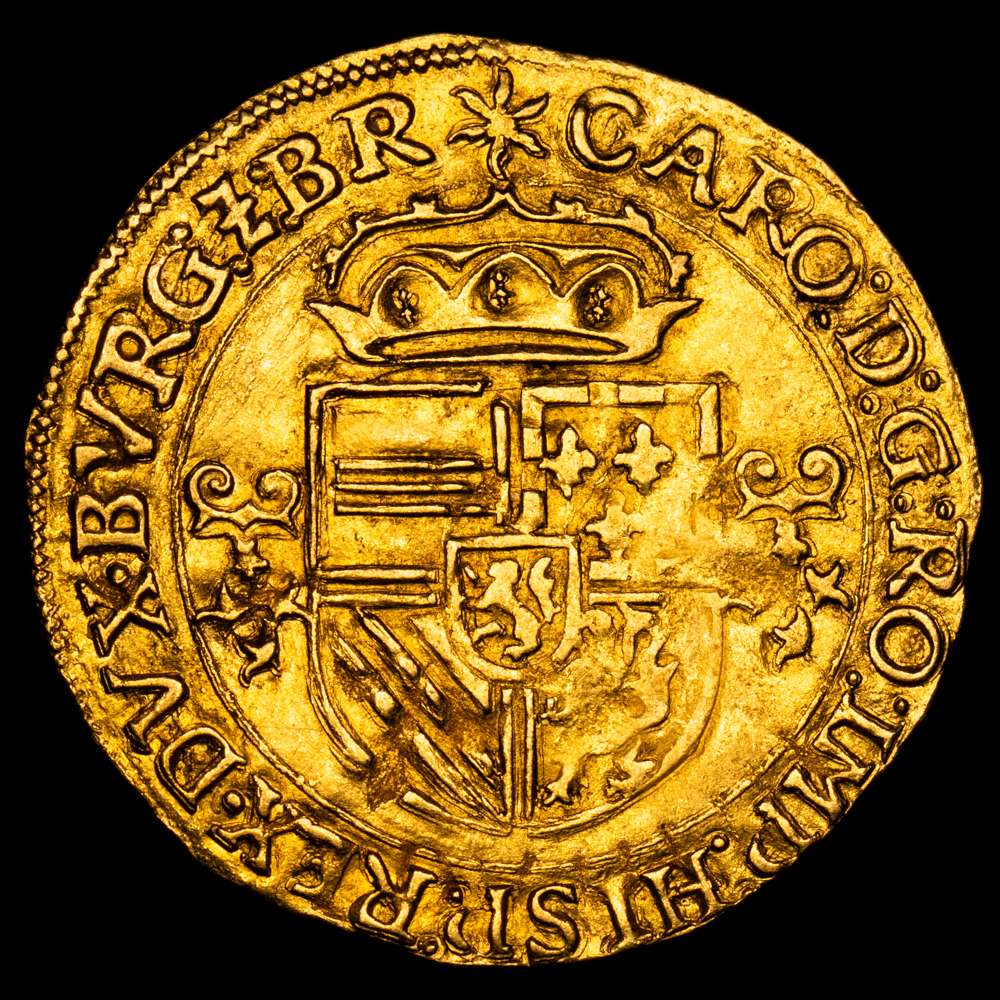 Numismática Barcala > Productos > Carlos I (1516-1556). Corona del sol. 1545. Amberes. (Tauler-143). (Vti-618). (Vanhoudt-223). Au. 3,39 g. Escasa. MBC+.