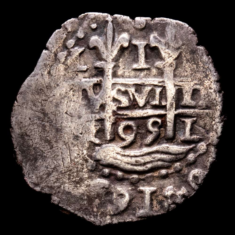 Carlos II (1665-1700). 1 real. 1695. Lima. R. (Cal-226). Ag. 2,81 gr. Triple fecha, la de la leyenda parcial. Tono. Escasa así. MBC.