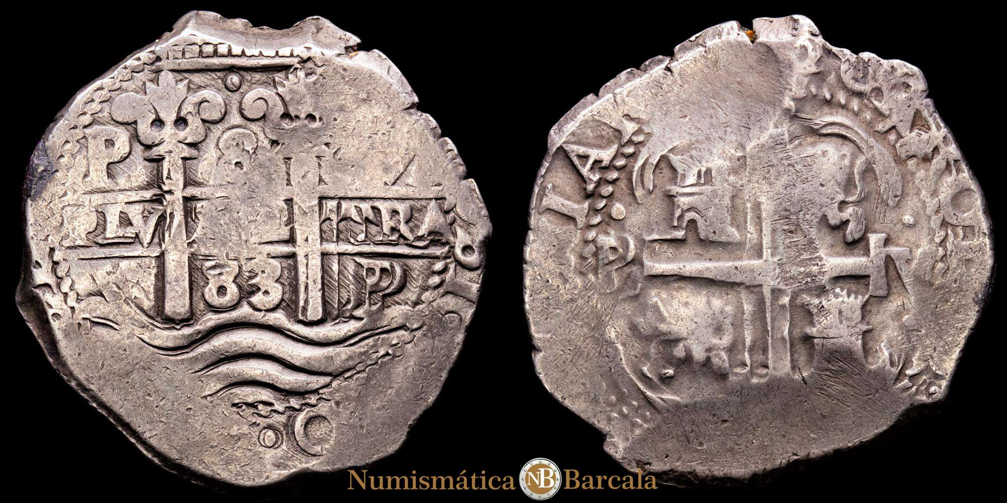 Carlos II (1665-1700). 8 reales. 1683. Potosí. V. (Cal-721). Ag. 27,49 gramos. Nombre del rey y triple ensayo visibles. Escasa. MBC+.