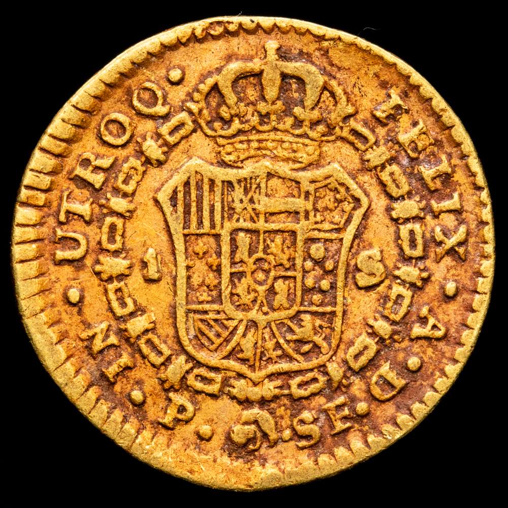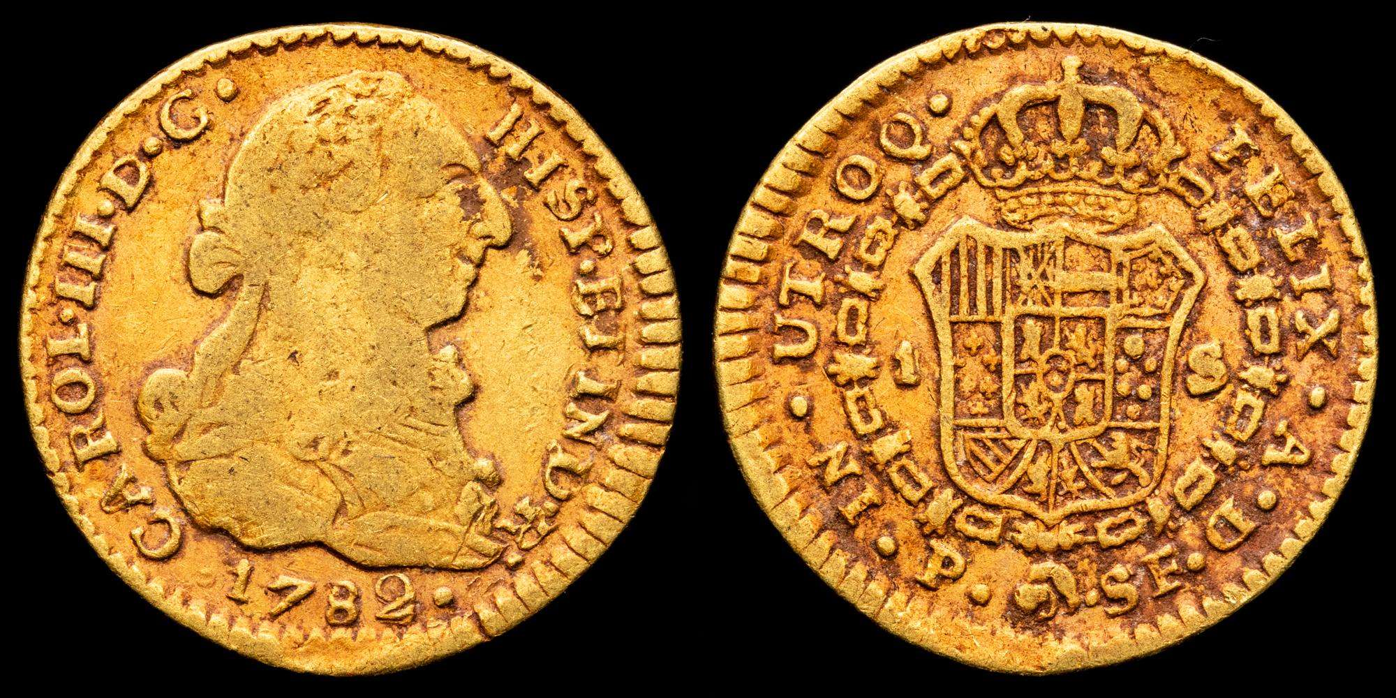 Numismática Barcala > Productos > Carlos III. 1 Escudo. (3,33 g.). Popayán. 1782. J·F. AC-1427. BC+/MBC-.