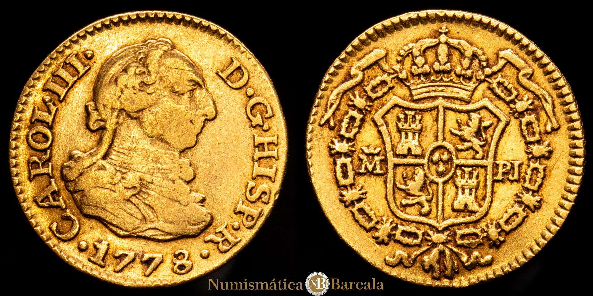 Carlos III (1759-1788). 1/2 escudo. 1778. Madrid. PJ. (Cal-1267). Au. 1,83 g. MBC.