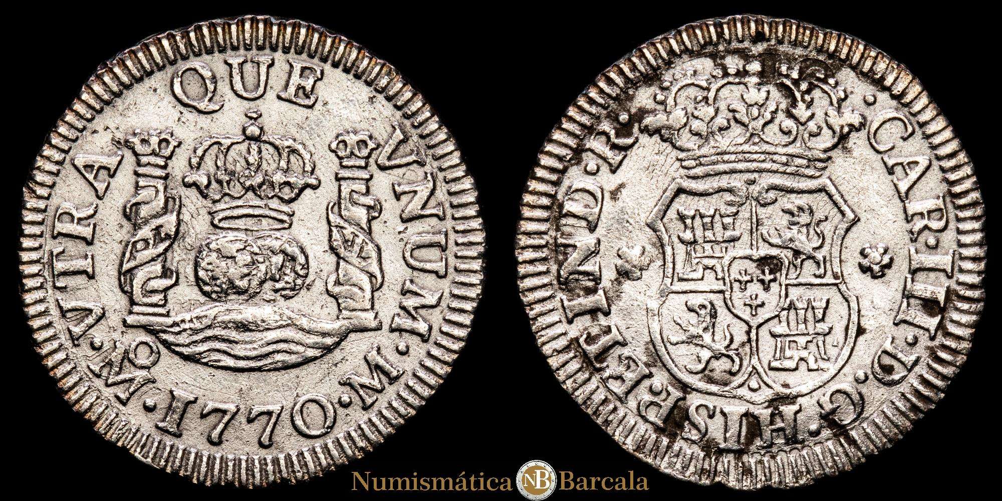 CARLOS III (1759-1788). 1/2 real. (Ar. 1,66g/16,5mm). 1770. México M. (Cal-2019-189). MBC+. Limpiada.