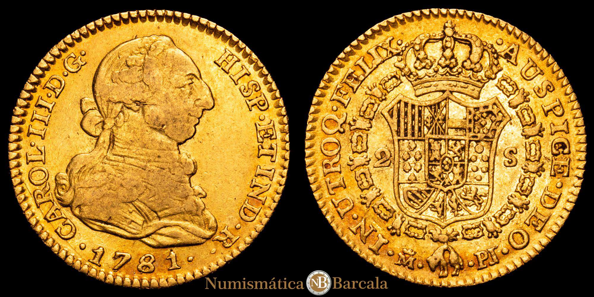 Carlos III (1759-1788). 2 escudos. 1781/71. Madrid. PJ. (Cal-1559). Au. 6,66 gramos. MBC+. Bonito color.