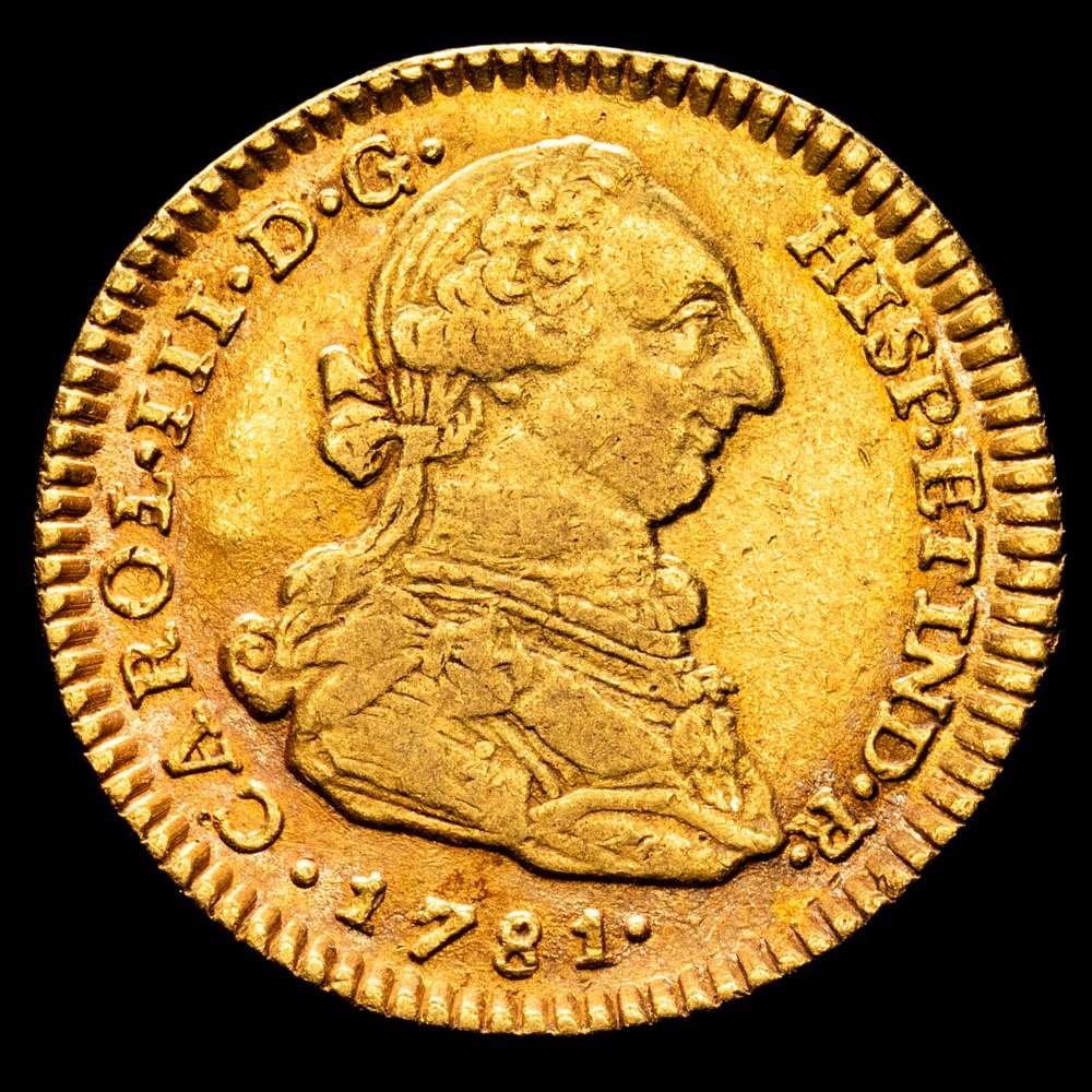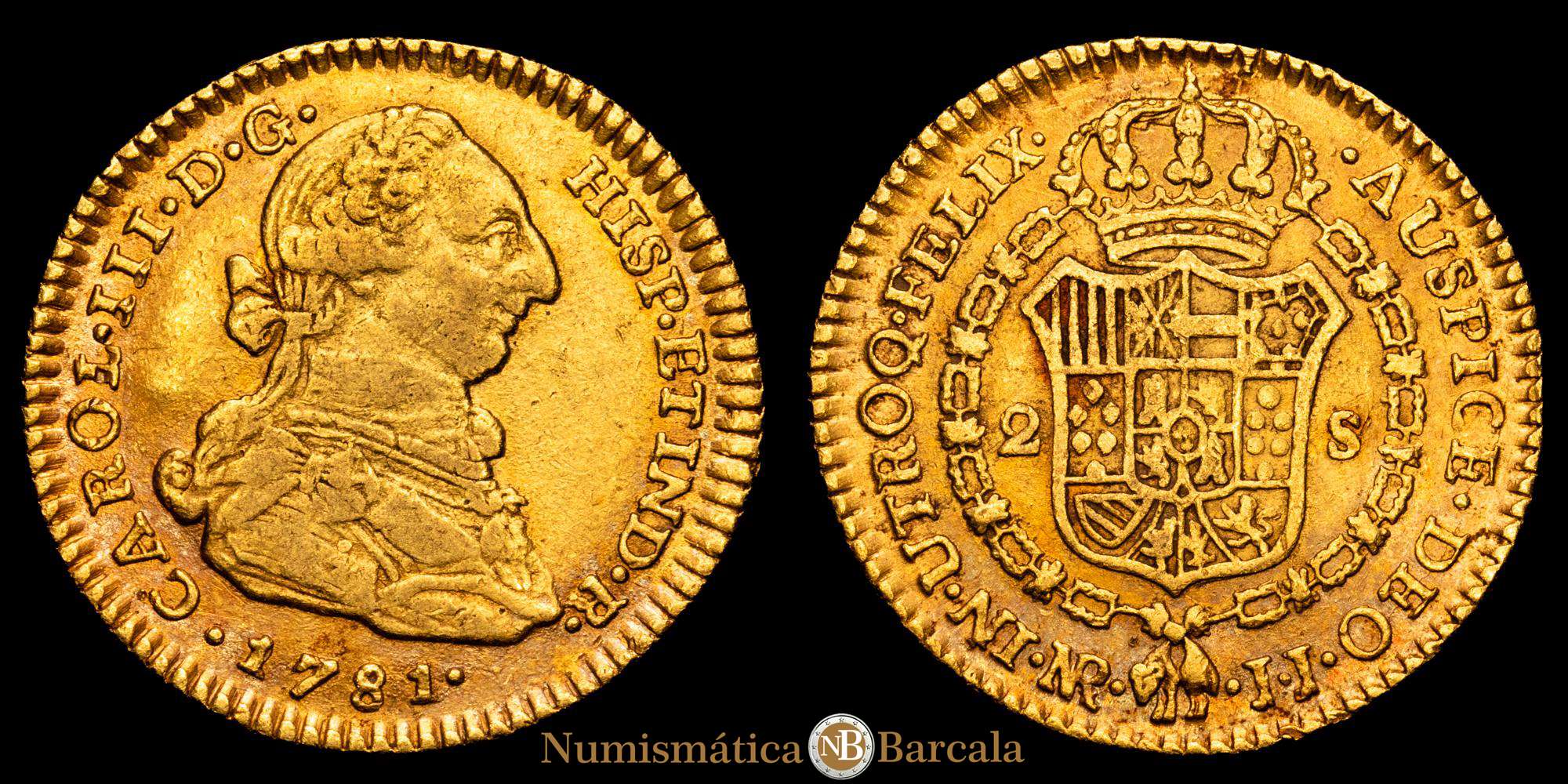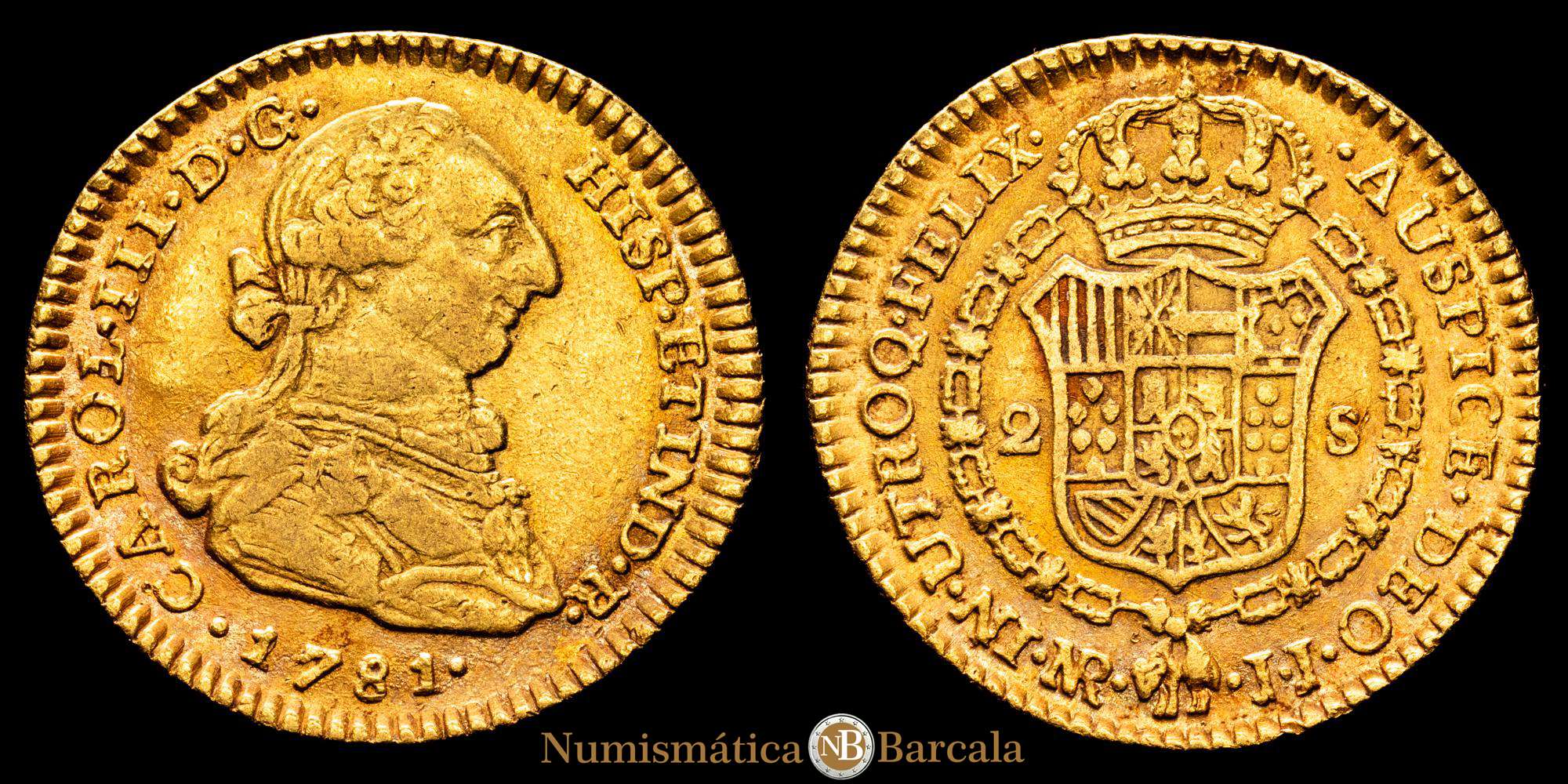 Carlos III (1759-1788). 2 escudos. 1781. Santa Fe de Nuevo Reino. J.J. (AC. 1702) (Restrepo 61-21) Au. 6,76 gramos.