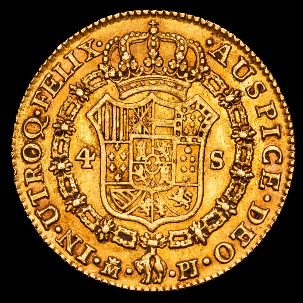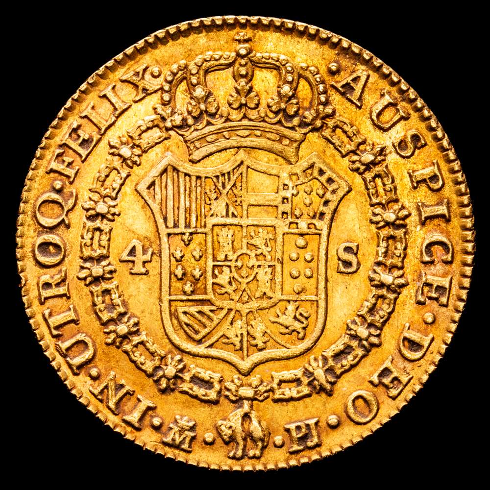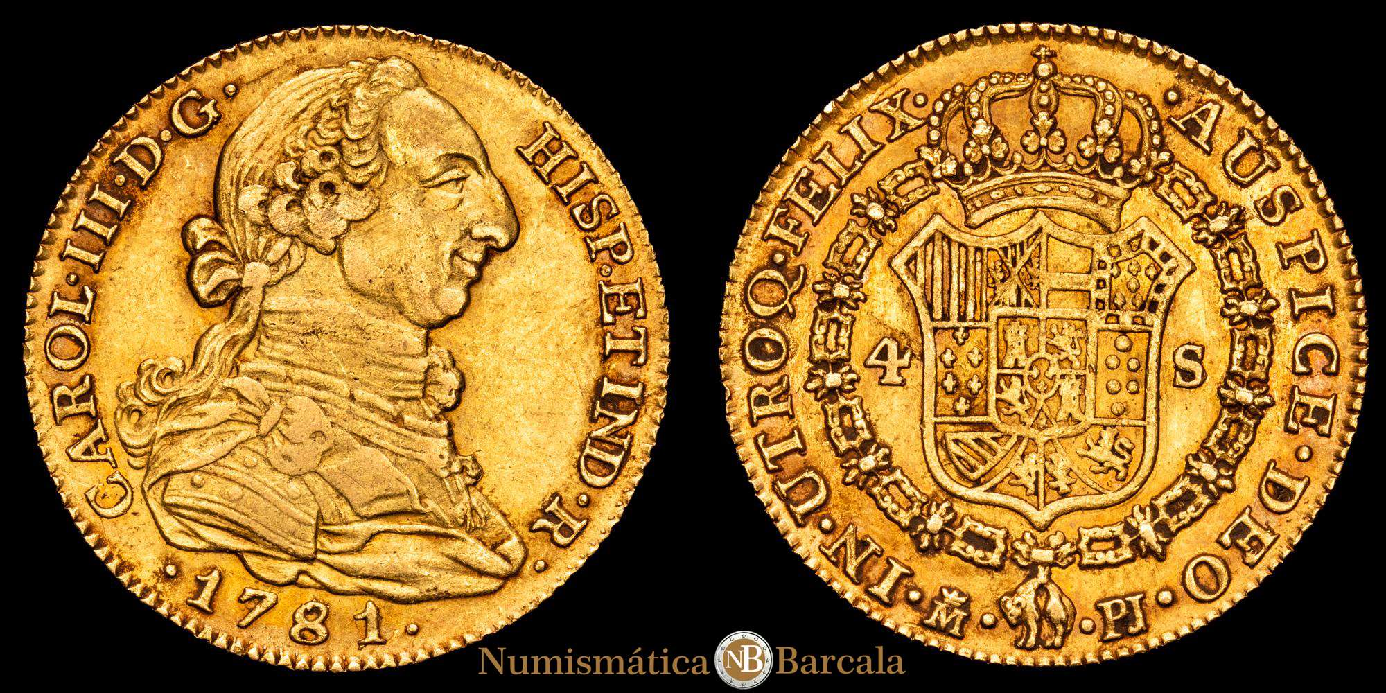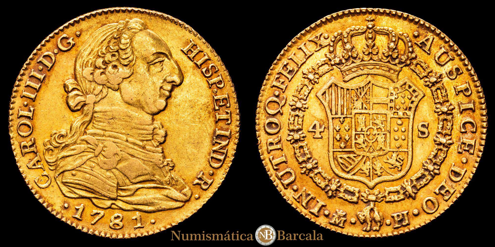 Carlos III (1759-1788). 4 escudos. 1781. Madrid. PJ. (Cal-1785). Au. 13,53 gramos. Bonito color. EBC-.