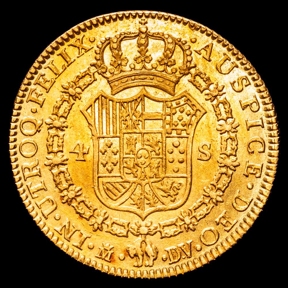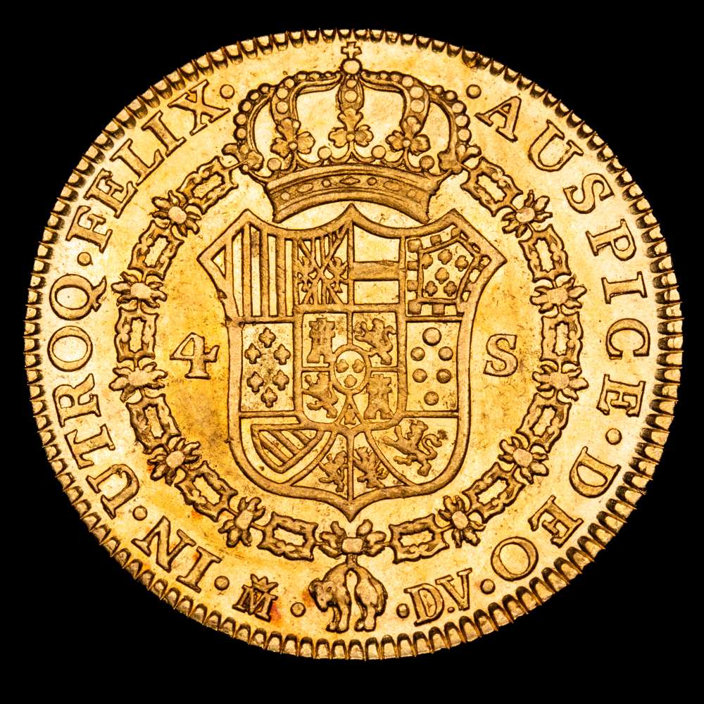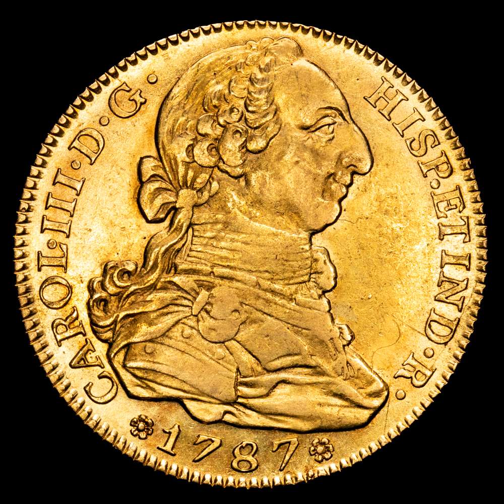 Numismática Barcala > Productos > Carlos III (1759-1788). 4 escudos. 1787. Madrid. DV. (Cal-1793). Au. 13,46 gramos. Parte de brillo original. EBC-/EBC+.