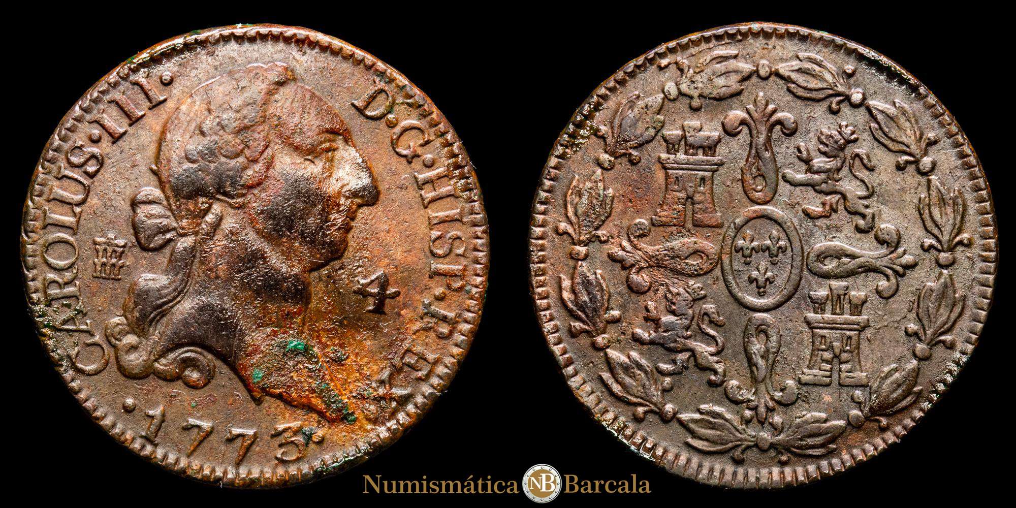 Carlos III (1759-1788). 4 maravedís. 1773. Segovia. (Cal-53). Ae. 4,99 g. (Metal ligeramente agrio por oxidación muy superficial en el anverso ) MBC+.