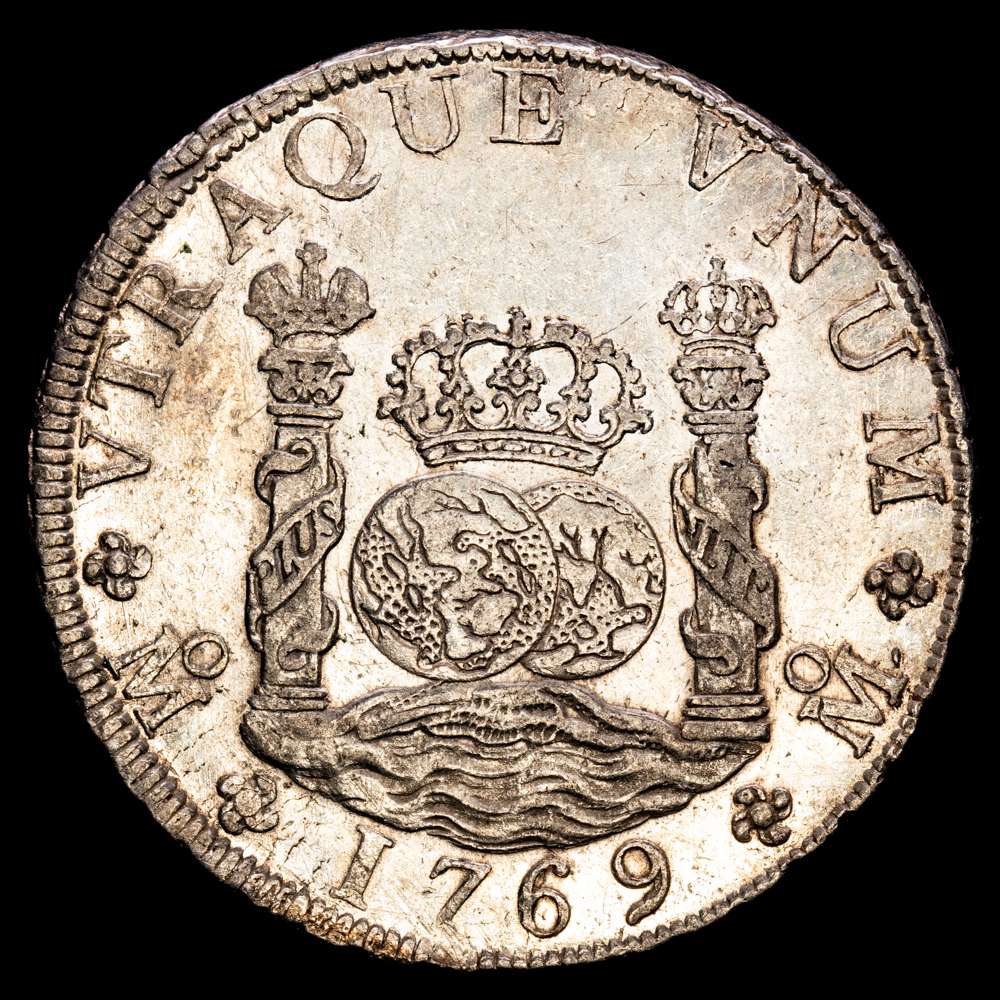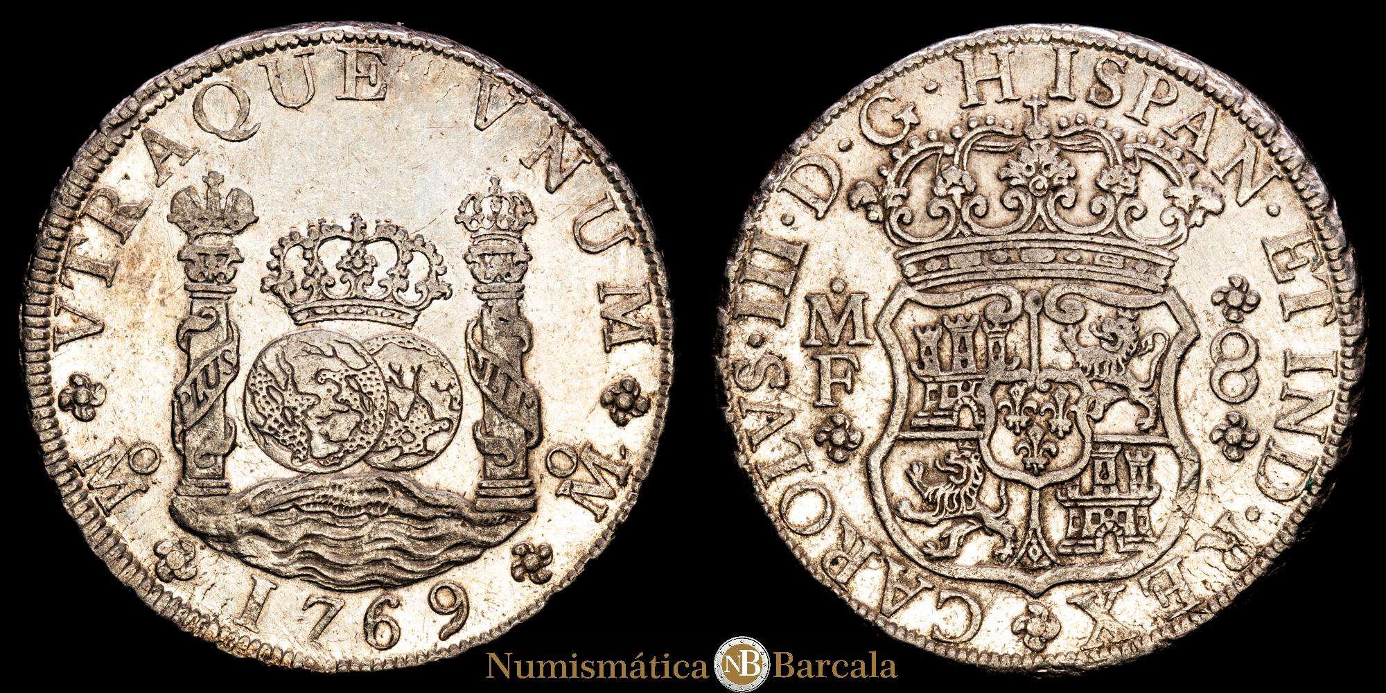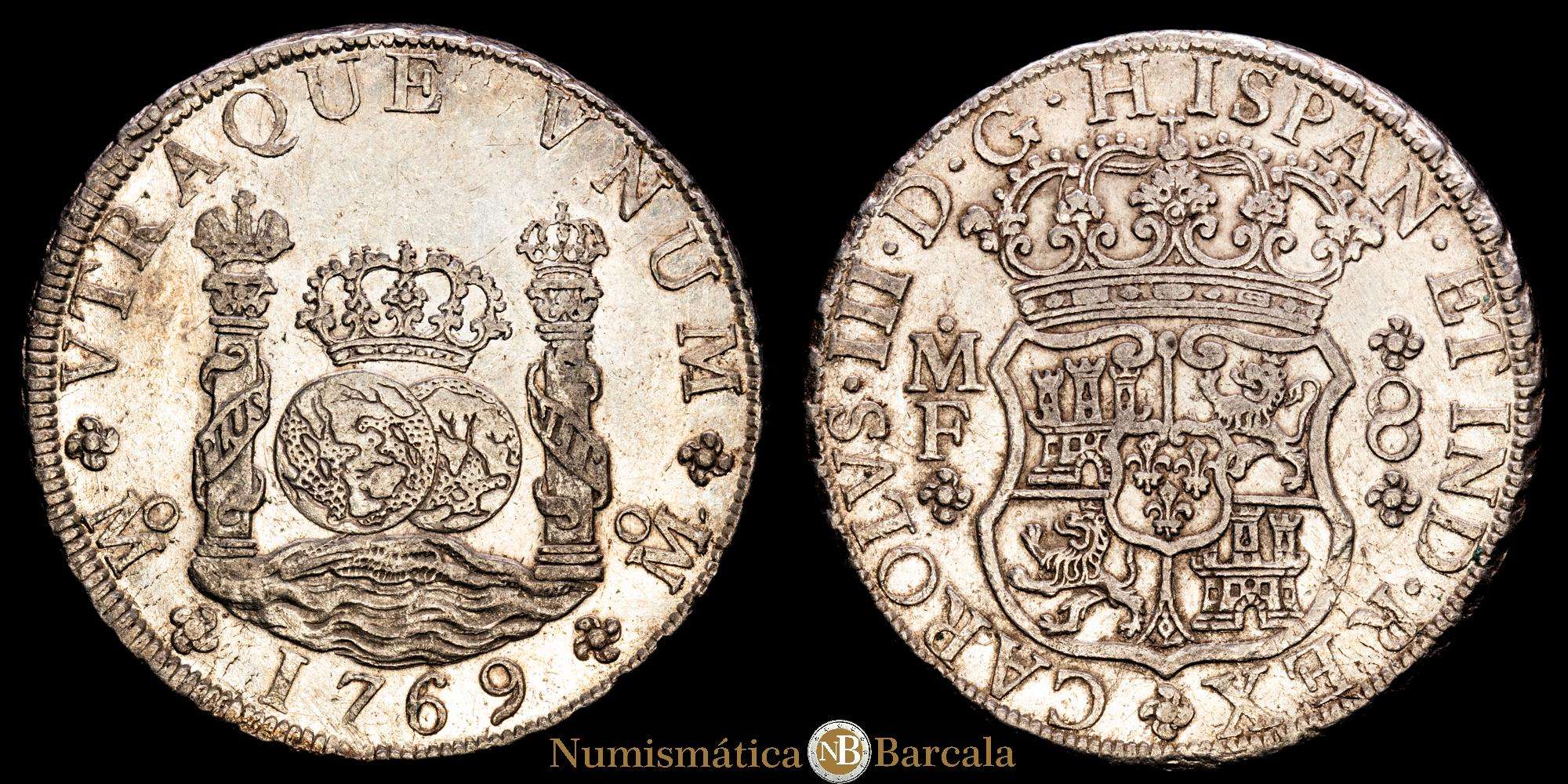 Carlos III (1759-1788). 8 reales. 1769. México. MF. (Cal-1095). Ag. 26,92 gramos. Restos de brillo originales. EBC.
