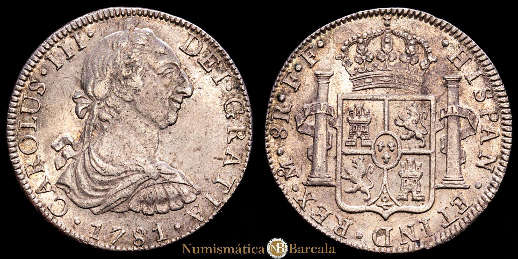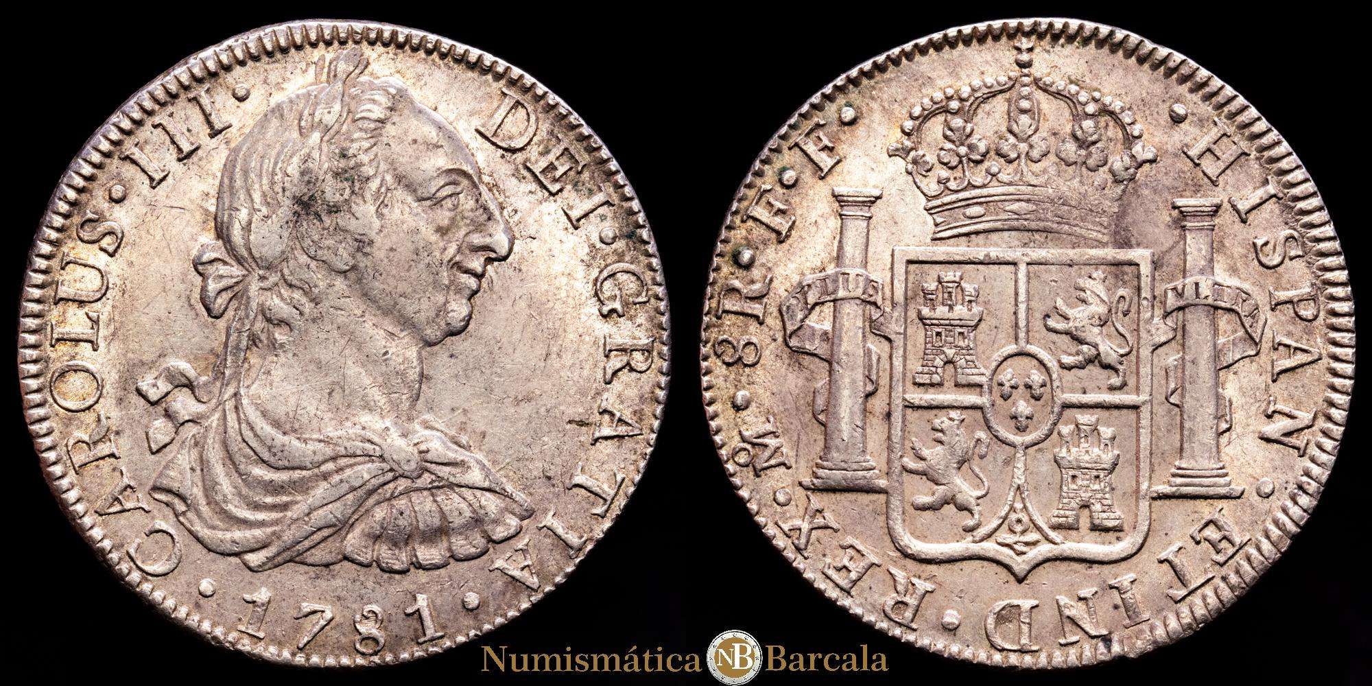 Carlos III (1759-1788). 8 reales. 1781. México. FF. (Cal-1121). Ag. 26,99 g. Restos de brillo original. MBC+/EBC-.