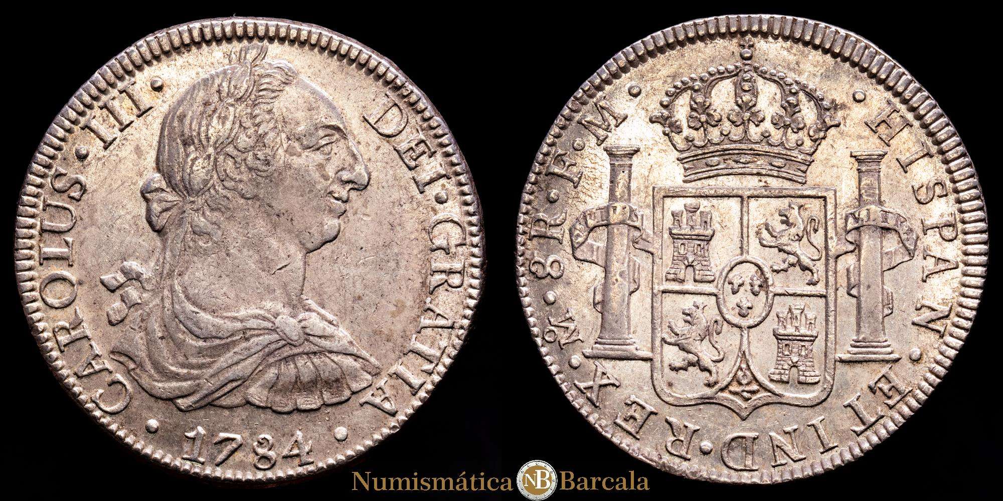 Carlos III (1759-1788). 8 reales. 1784. México. FM. (Cal-1126). Ag. 27,01 gramos. Restos de brillo originales. EBC-/EBC. Tono.