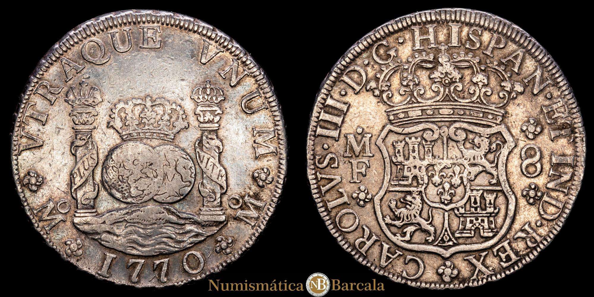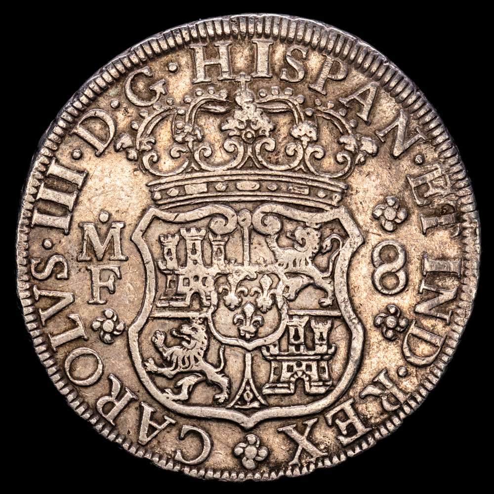 CARLOS III (1759-1788). 8 reales. México. 1770/60. MF. AR 26,77 gramos. 39,7 mm. VI-928 var.; AC-1096. Yonaka-M8-70a.