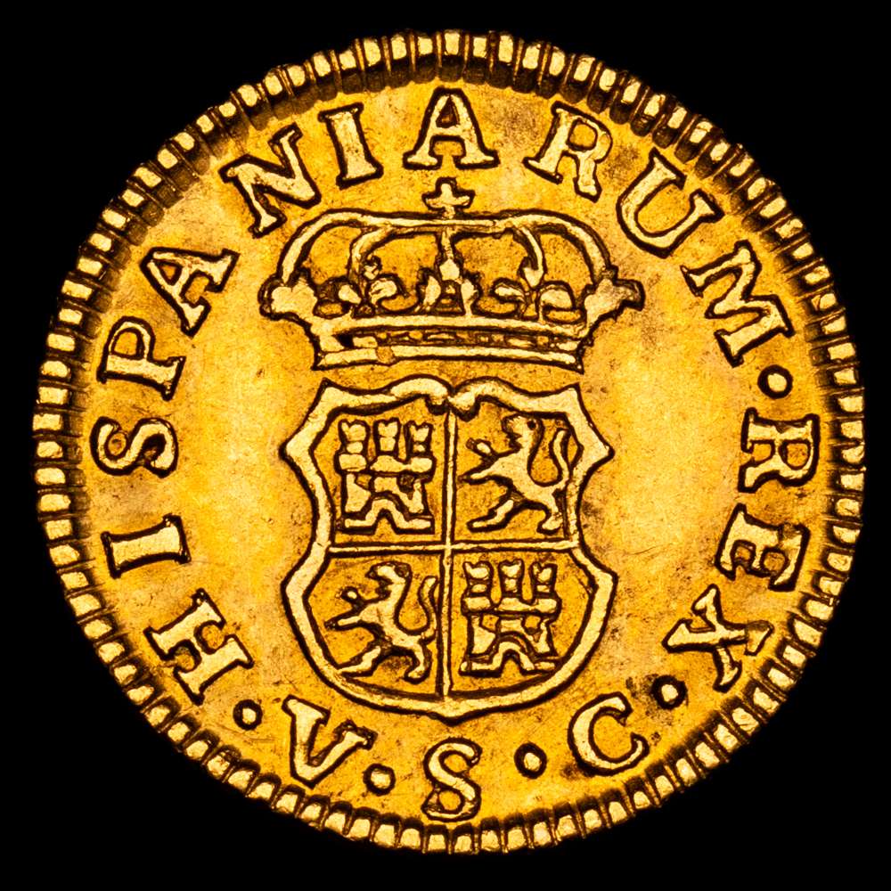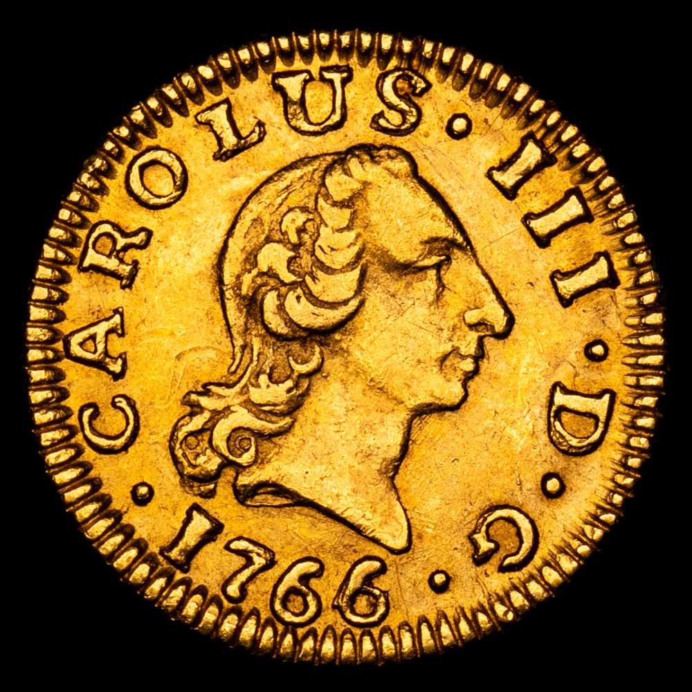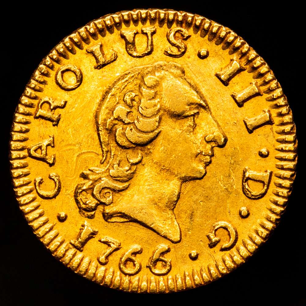 Numismática Barcala > Productos > Carlos III. 1766/4 Sevilla. VC. 1/2 escudo. (AC. 1294). Bella. Sobrefecha muy escasa y mas así. 1,76 g. EBC-/EBC.