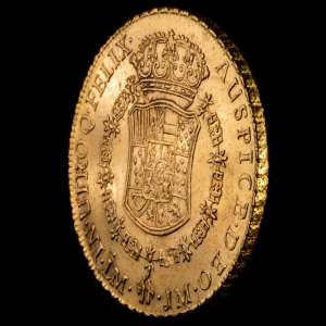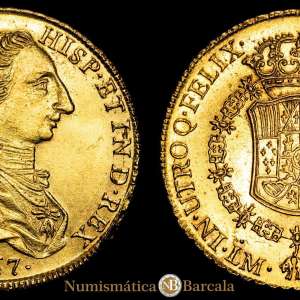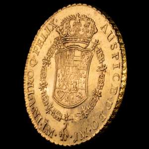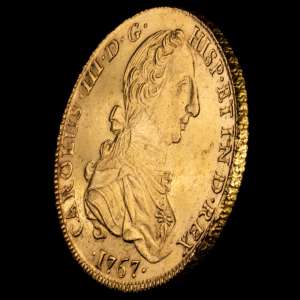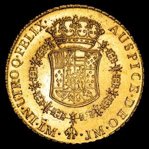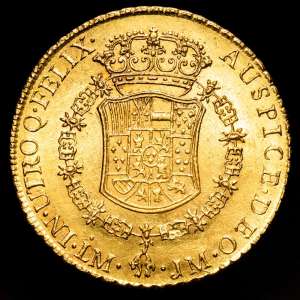 Carlos III. 1767. Lima. JM. 8 escudos. (AC. 1920) (Cal.Onza 681). Tipo “cara de rata”. Bella. Rara. 27,14 g. EBC.