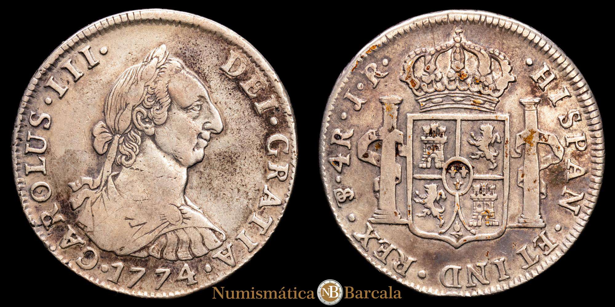 Numismática Barcala > Productos > Carlos III. 1774. Potosí. J.R. 4 reales. (AC.931). Escasa. 13,25 gramos. MBC-.