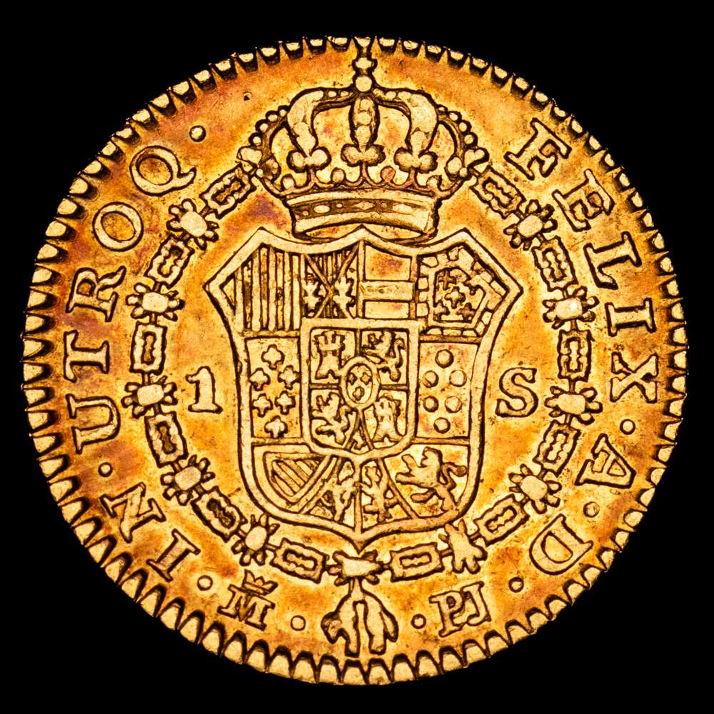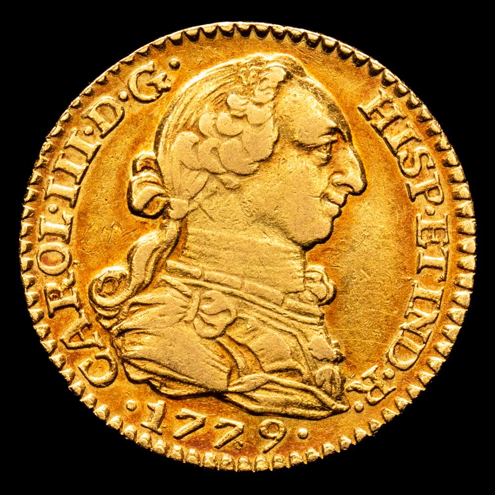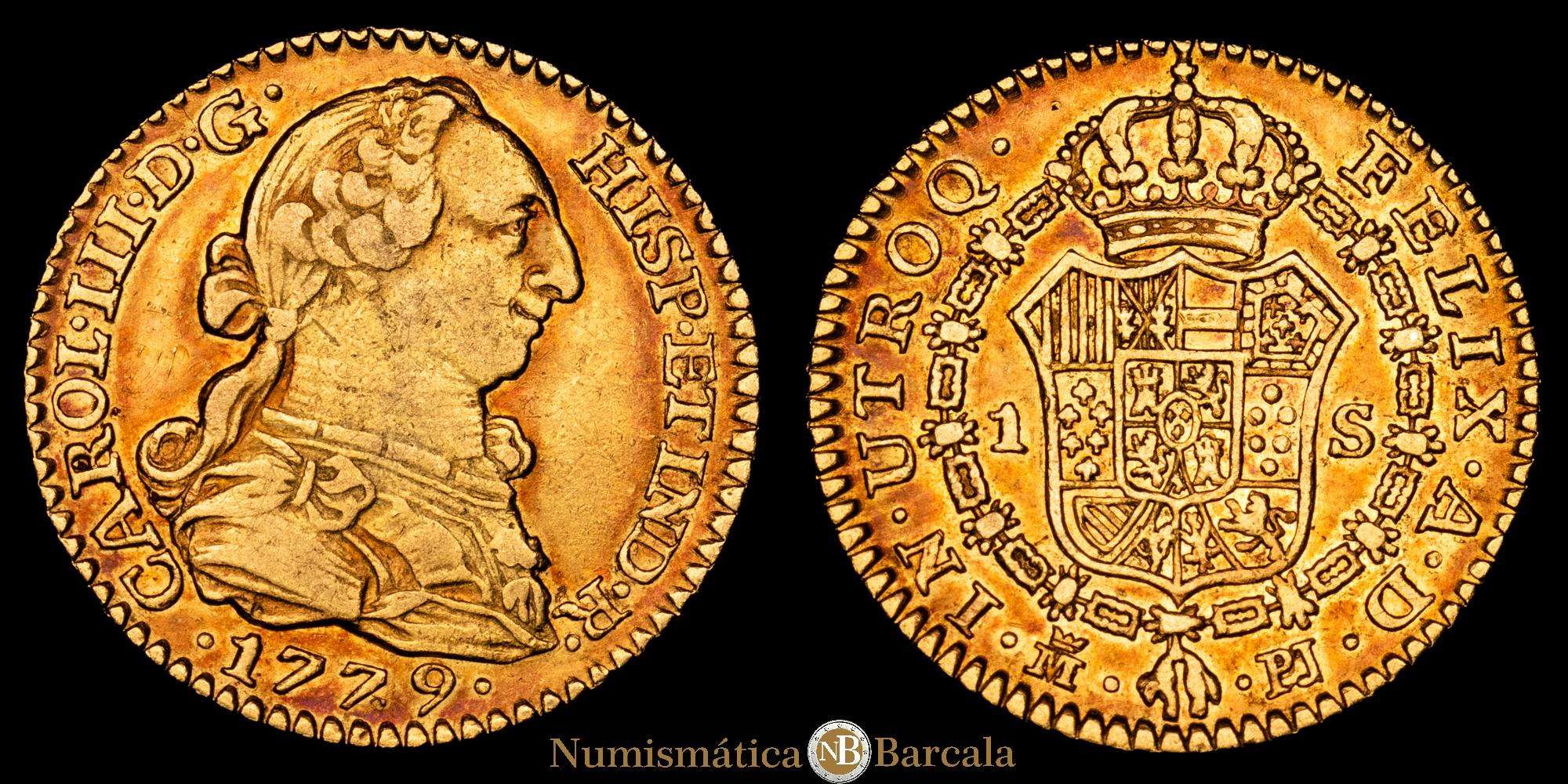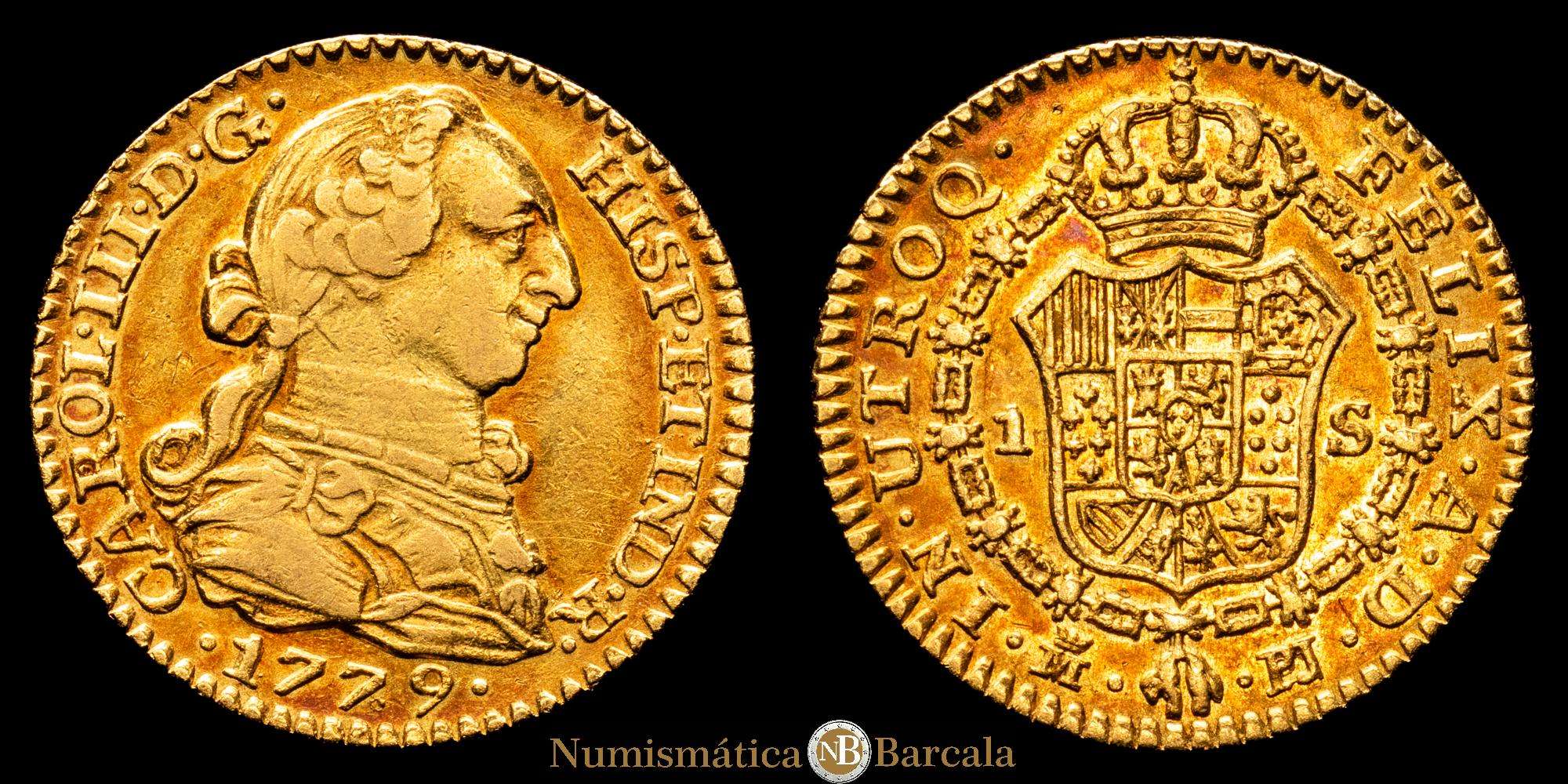 Carlos III. 1779 Madrid. PJ. 1 escudo. (AC. 1358). Precioso color. Escaso en esta condición. 3,41 gramos. EBC-/EBC.