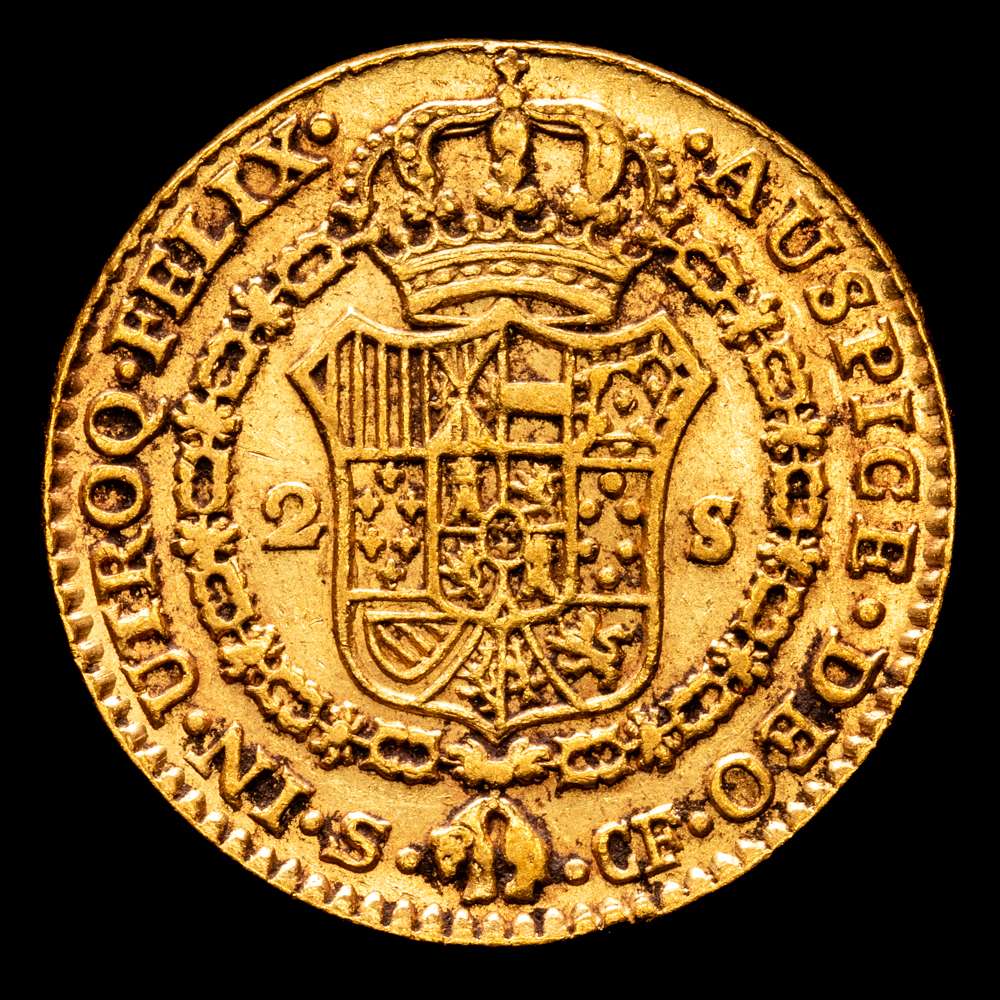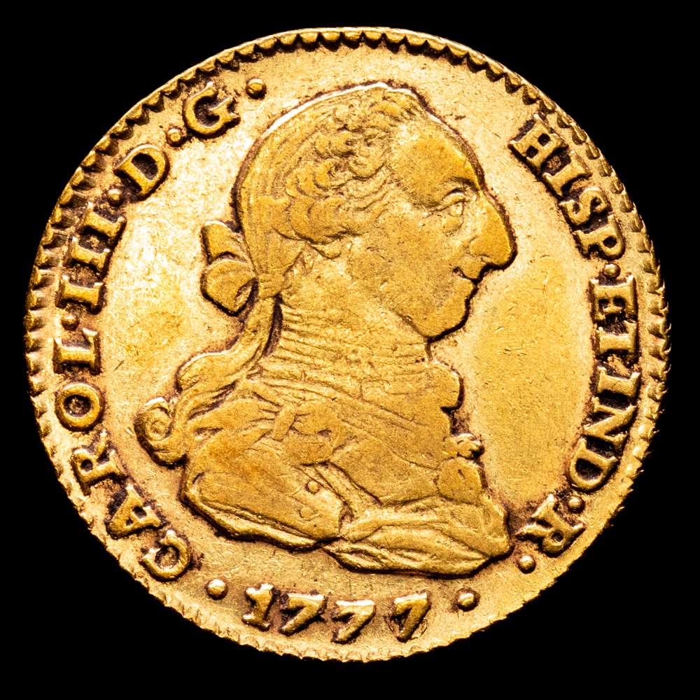 CARLOS III. 2 escudos. 1777/6. Sevilla. CF. UA 6,71 g. 22,3 mm. VI-1420; AC-1731. R.B.O. MBC. Escasa.