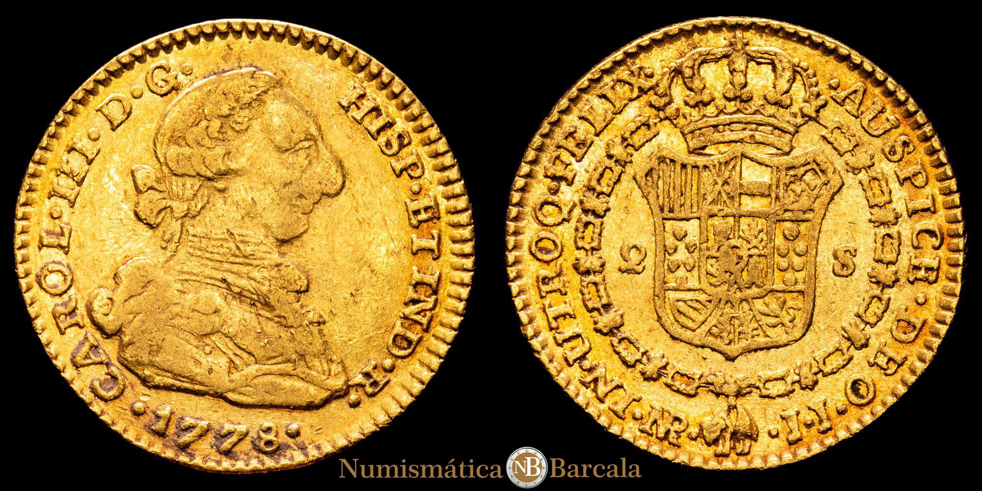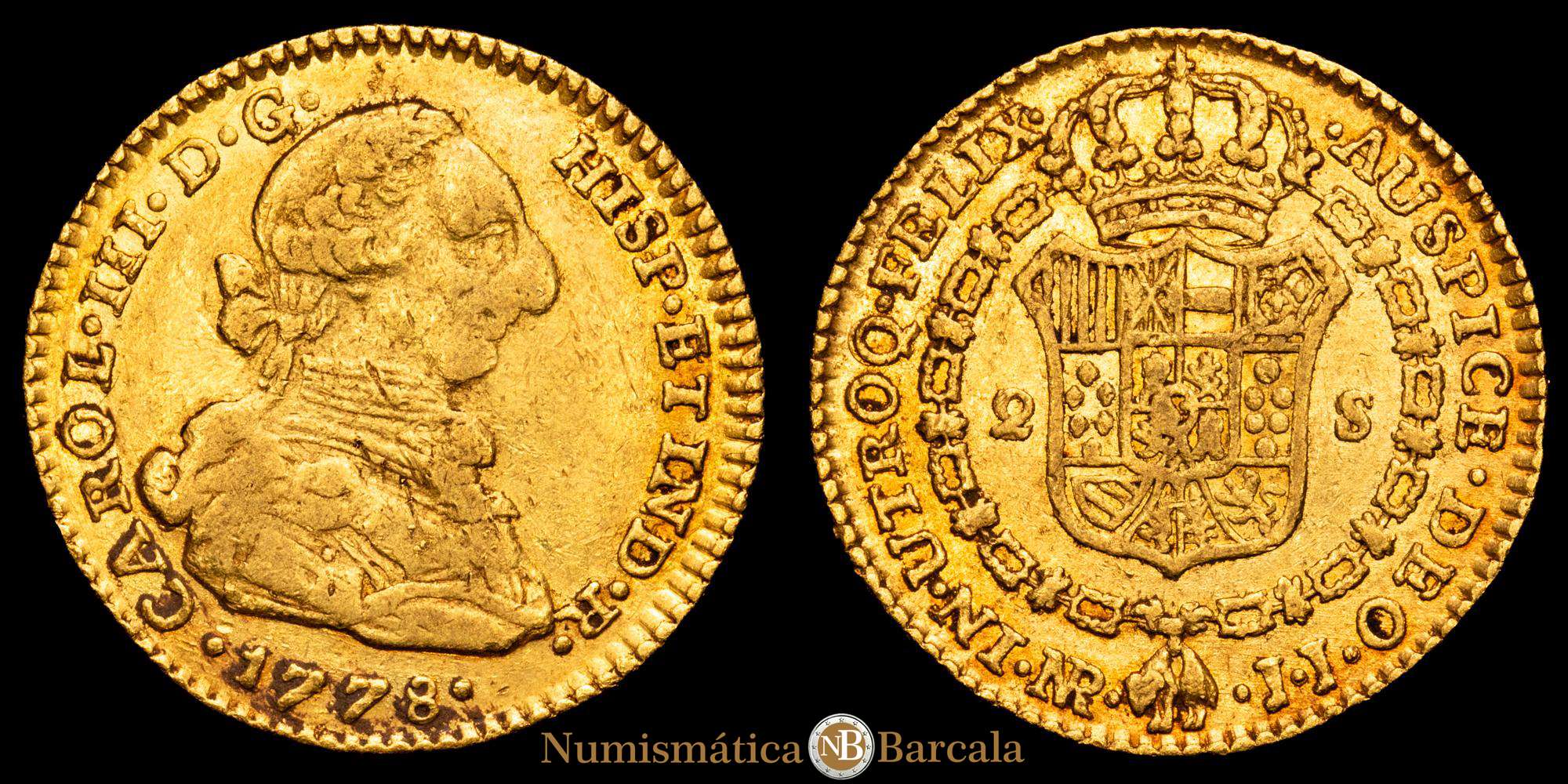 CARLOS III. 2 Escudos. 1778. NUEVO REINO, J.J. (6,72 gramos). Bonito color. AC-1697. MBC.